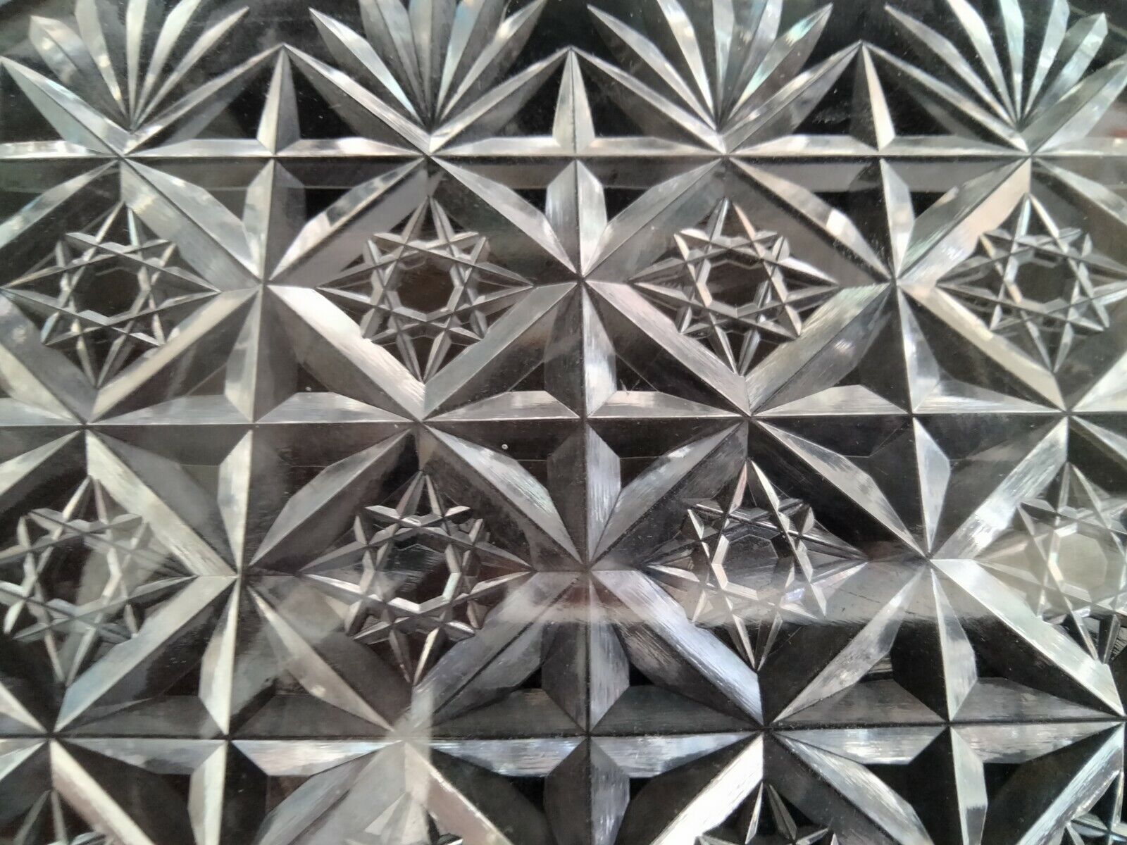 Beautiful Webb clear cut glass dressing table tray, 32 X 25 cm. Etched signature on the base. Good condition with no cracks, just has 3 tiny nibbles on the rim which aren't at all noticeable.