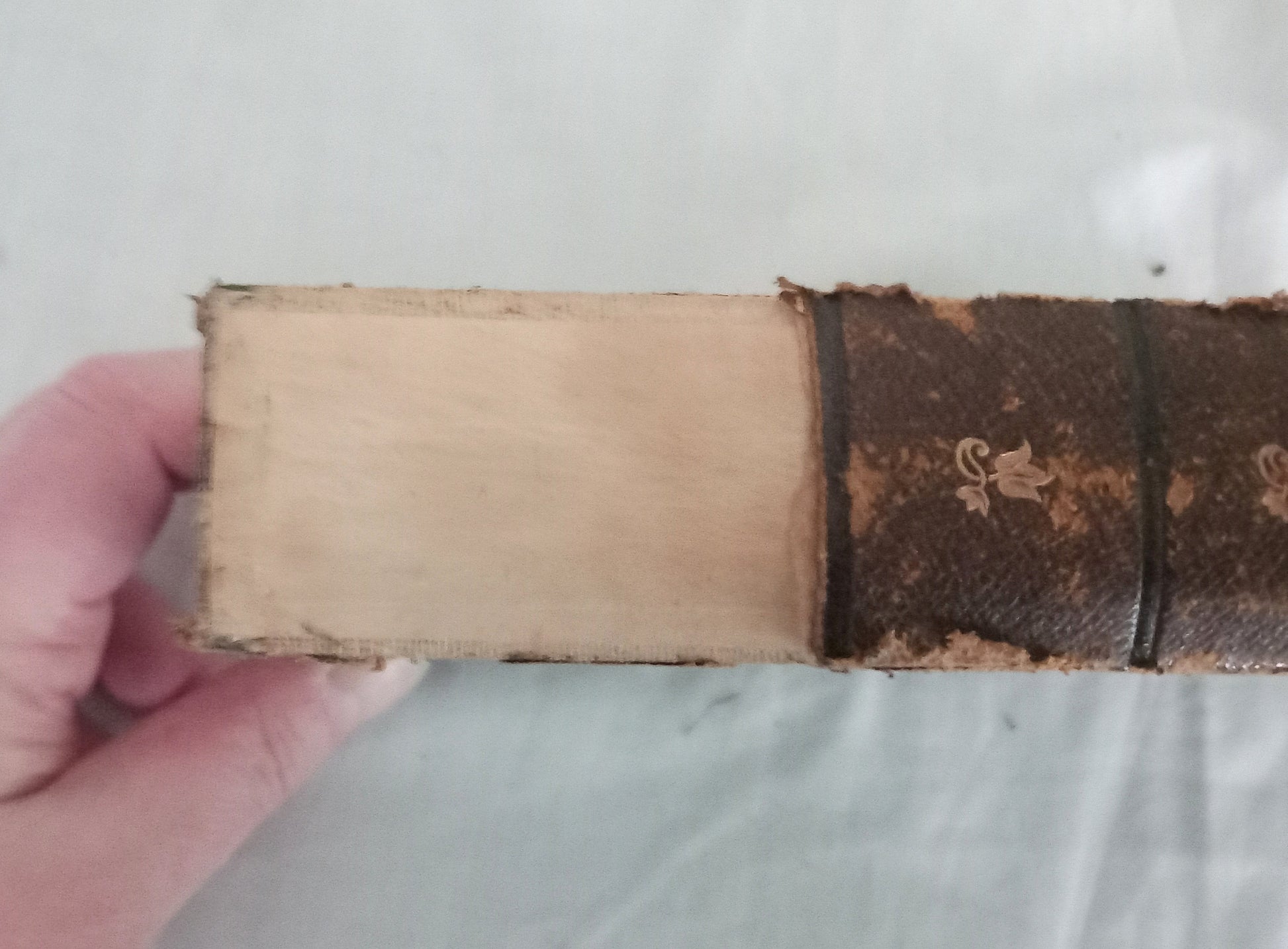 Green leather binding with gilt decoration, hand dated inside 1909. Illustrated by Phiz. The spine is damaged as pictured and is brown (not sure if it's faded or was originally a different colour).