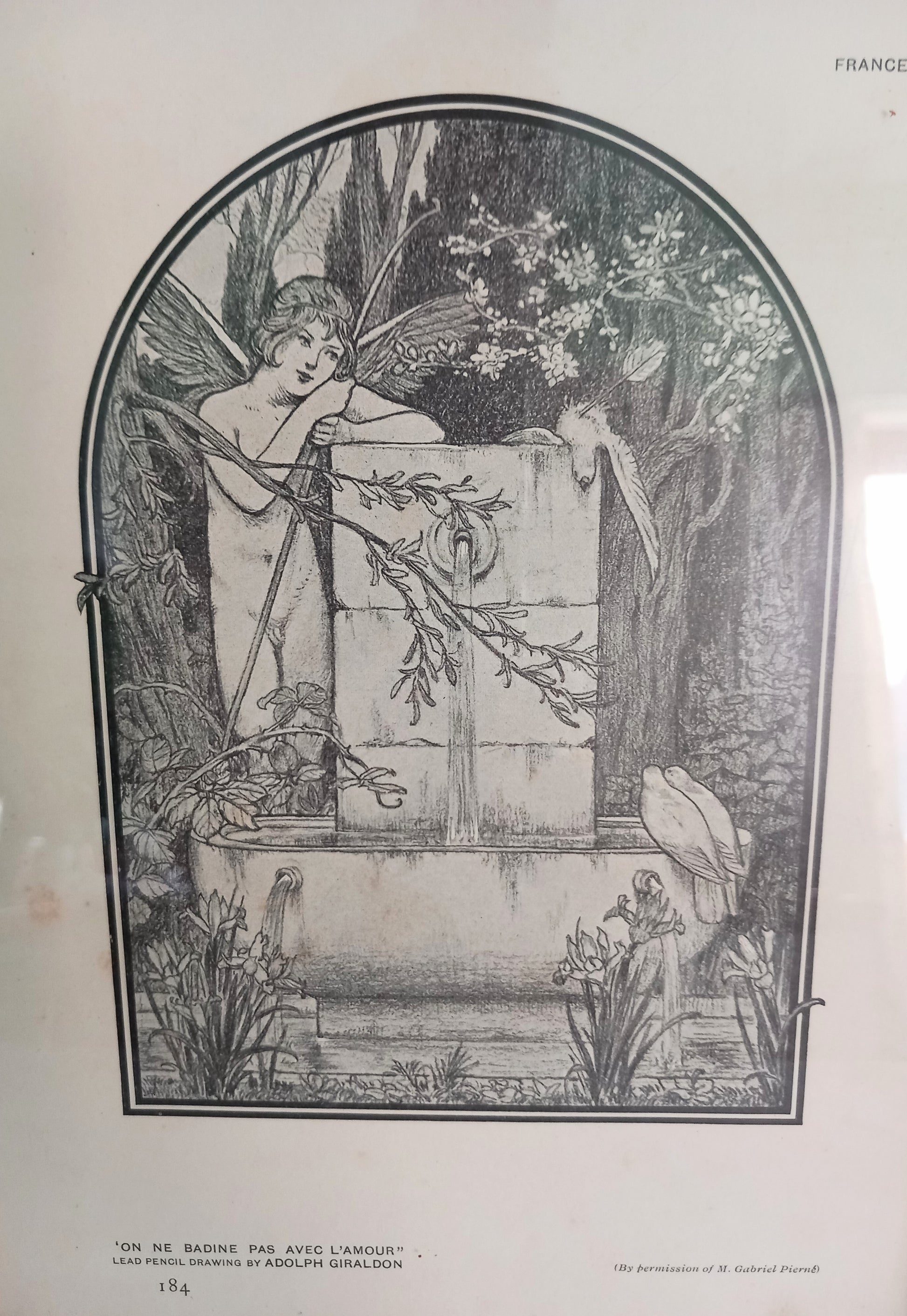 Framed Edwardian Print Of A Drawing By Adolph Giraldon Fairy And Fountain