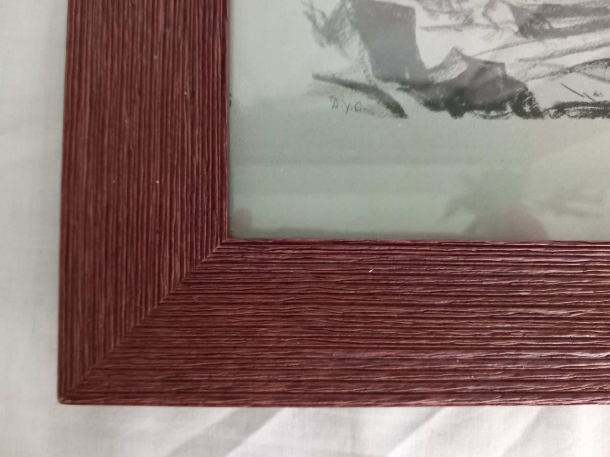 Framed vintage print on grey paper of an original drawing 'Among The Arran Hills' By D Y Cameron, with modern textured real wood frame, 13 x 11 inches. Good condition.