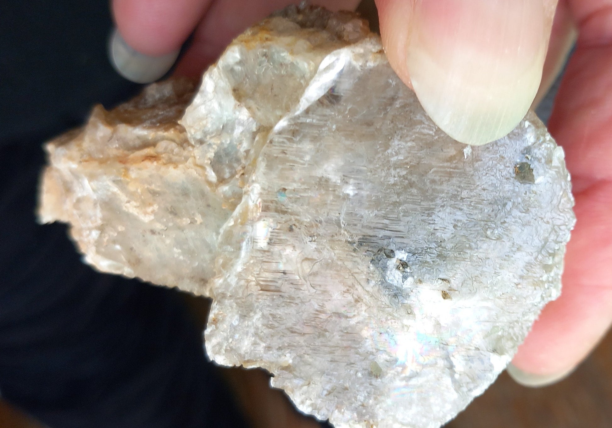 This has an iridescent inclusion but it was hard to get it to show up in the photos. Hand collected from Ketton, UK. 7 X 5 X 3 cm.