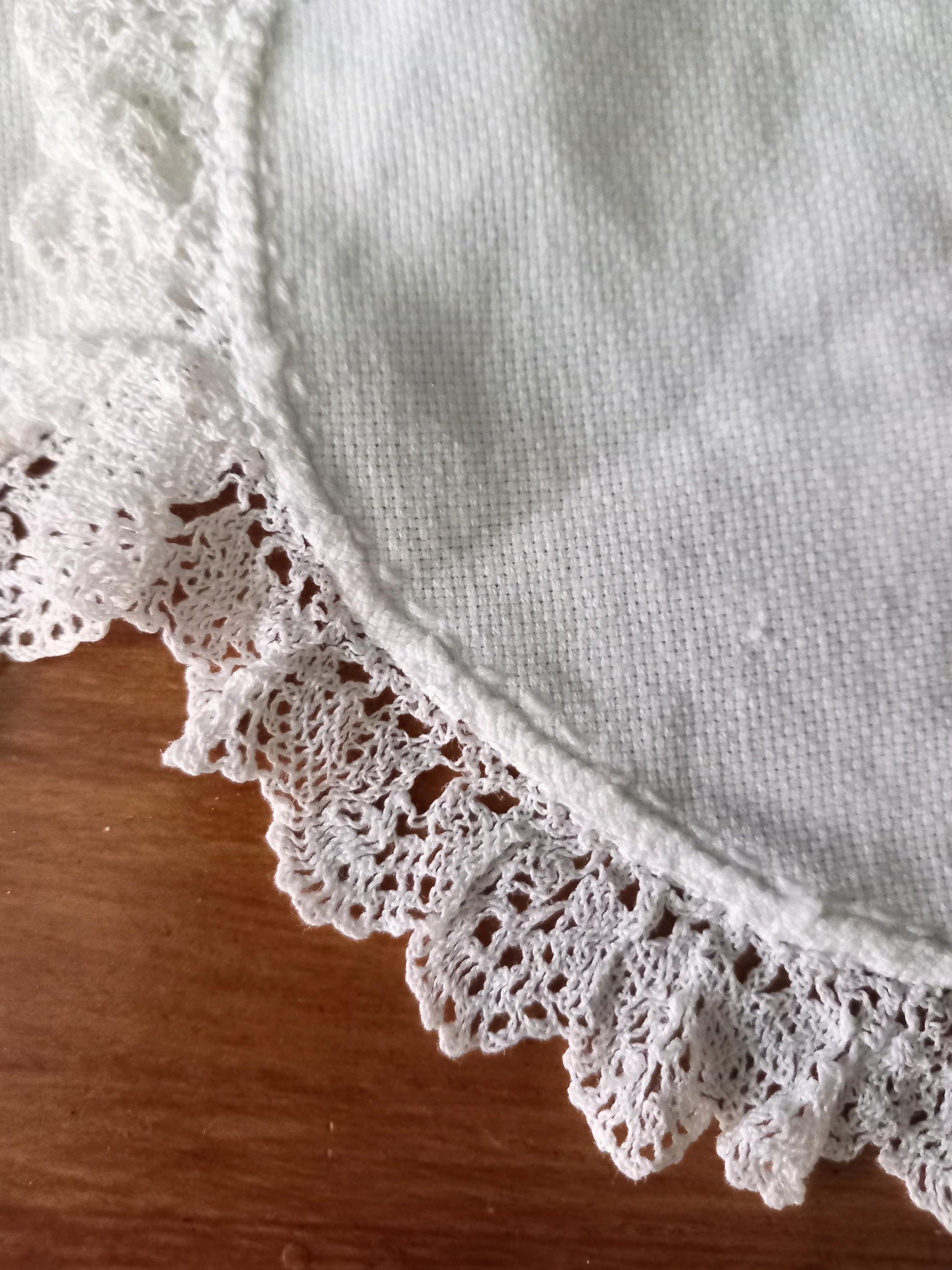 Set of 3 vintage Edwardian white round cotton doilies with hand made lace edge