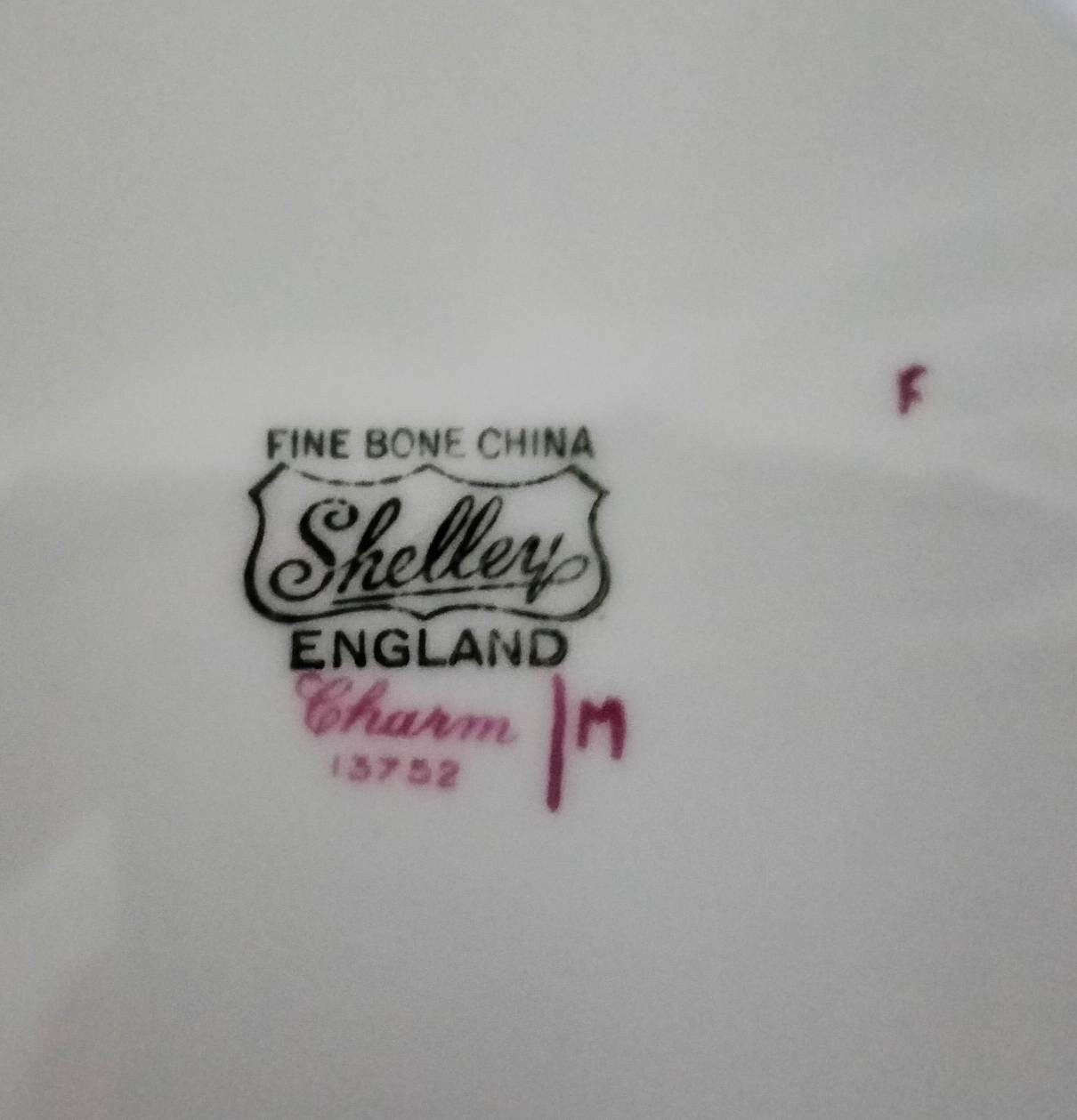 Shelley Charm vintage sandwich set with 4 tea plates (7 inches) & cake/sandwich plate (9.5 x 8.5 inches). All in good condition with no chips or cracks.