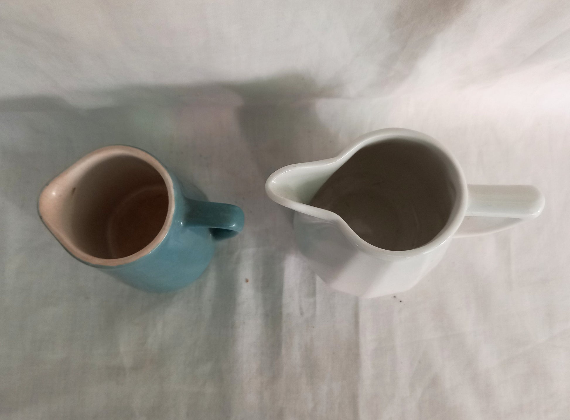 Two Mid Century Milk or Cream Jugs, Blue & White