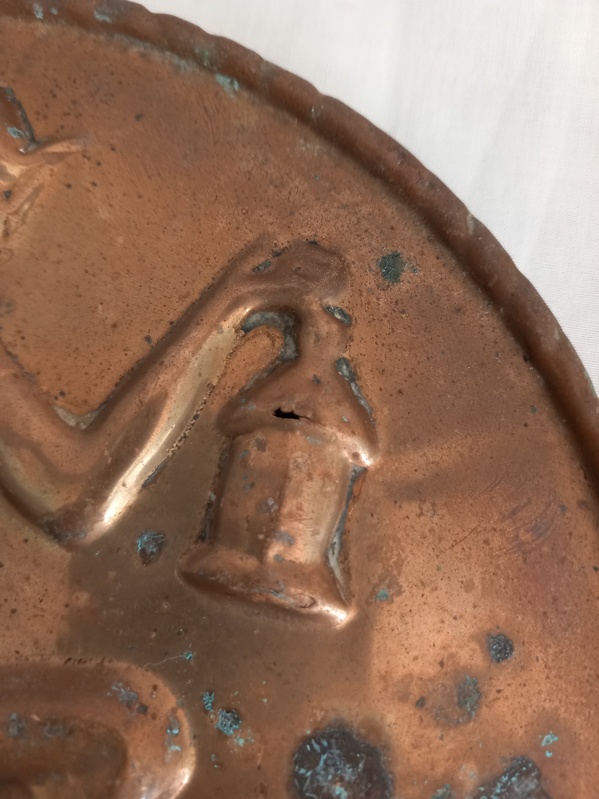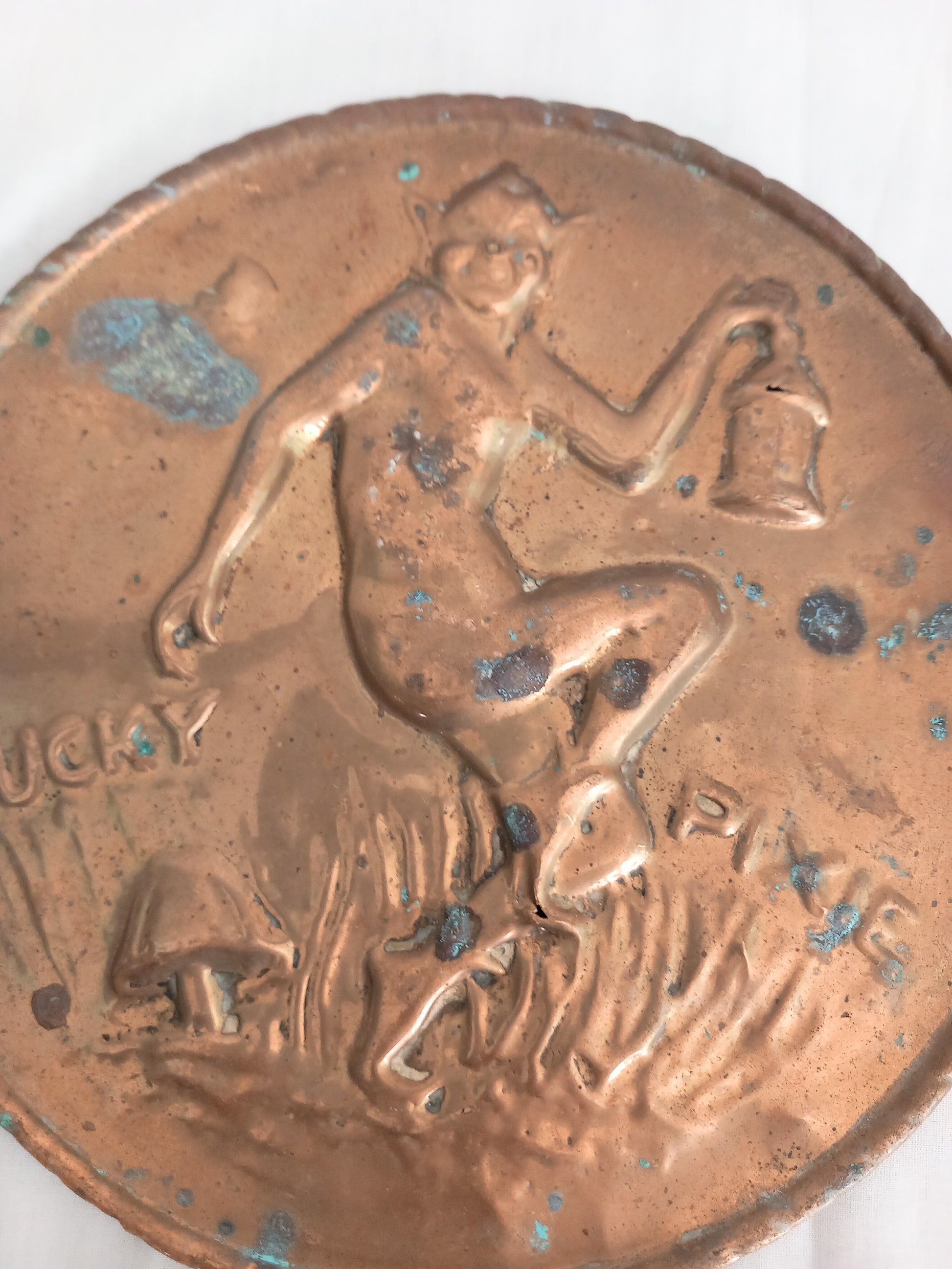 Vintage lucky pixie piskie brass copper textured wall hanging plaque 8"