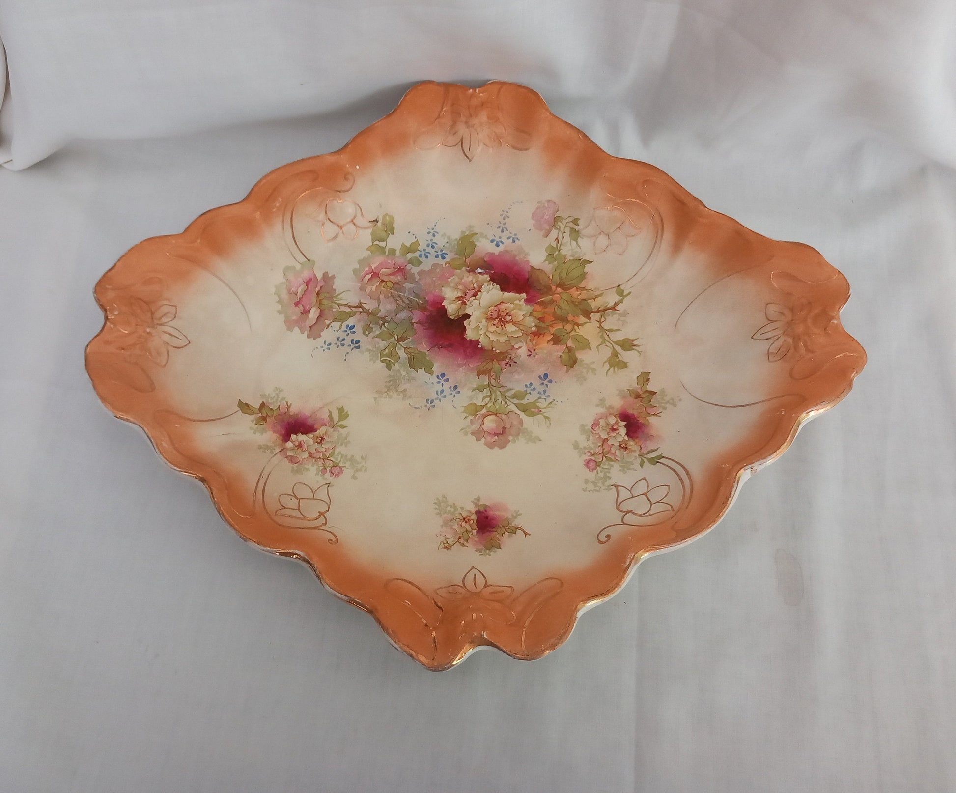 Antique Victorian Flower Print Diamond Shaped Large Bowl 13.5"