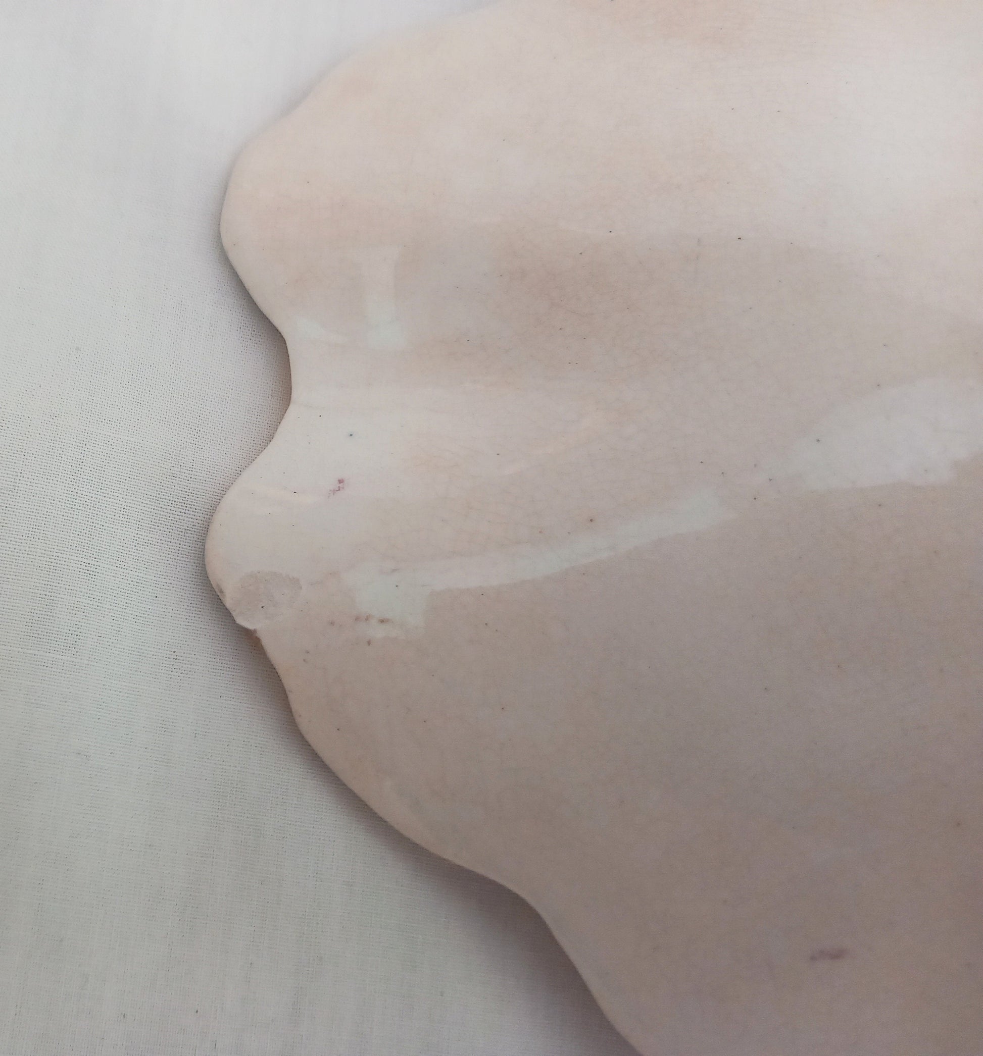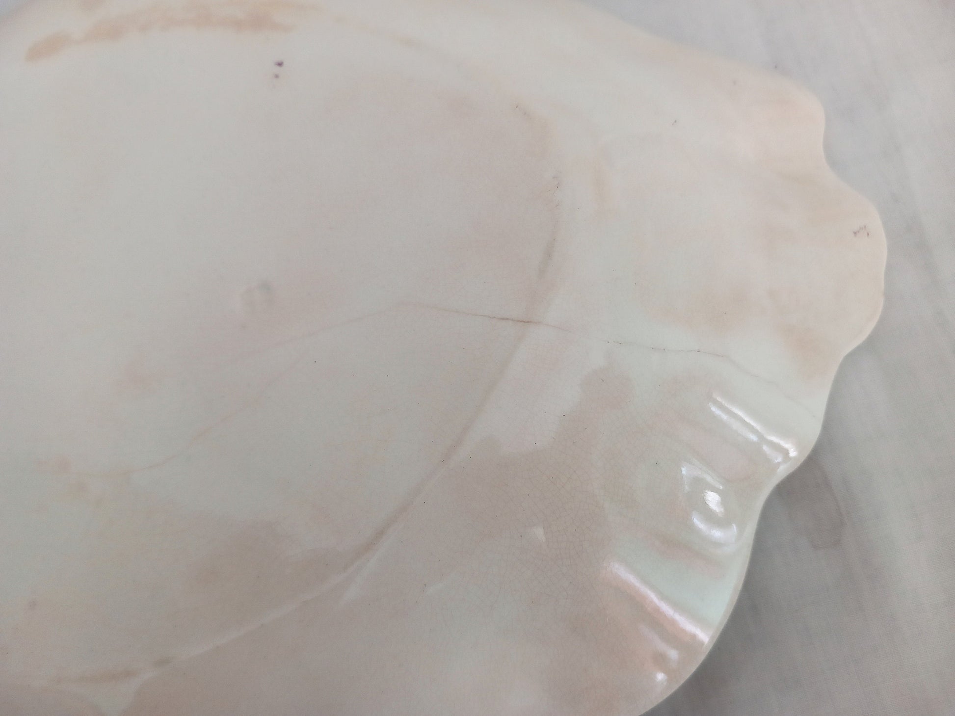 13.5 x 11.5 inches. No makers mark. This displays well but has a hairline crack across it and a couple of chips as shown in the pictures.