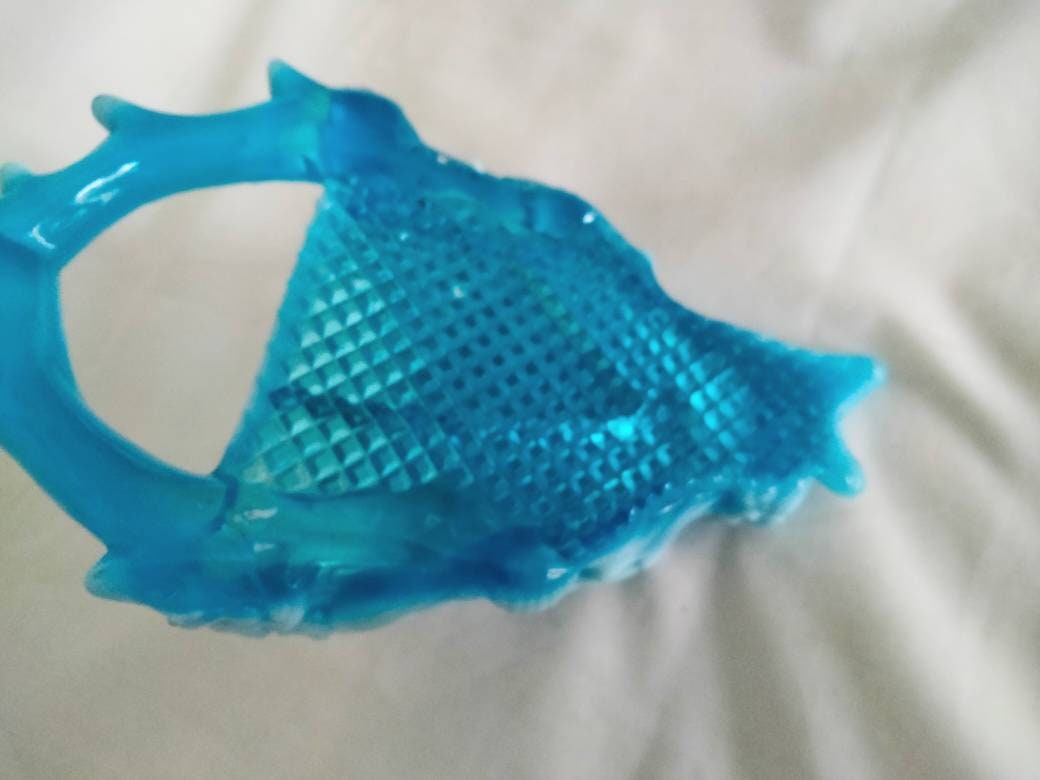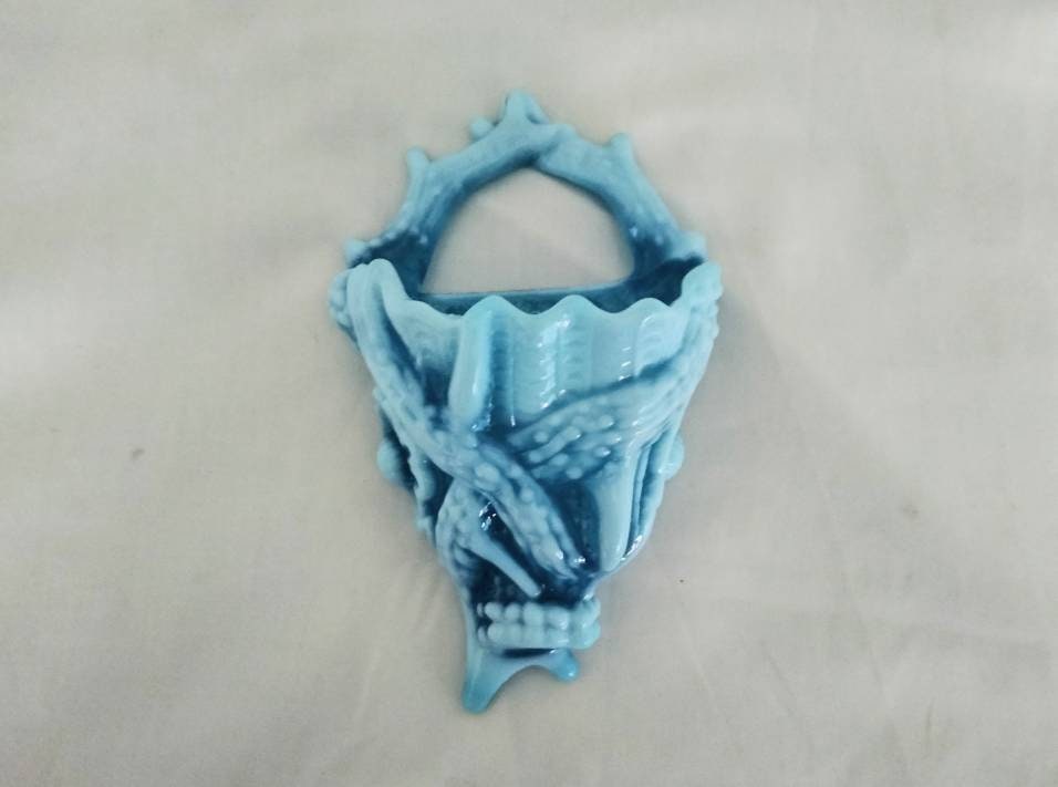 Victorian Davidson Blue Opalescent Pearline Glass Wall Pocket Vase