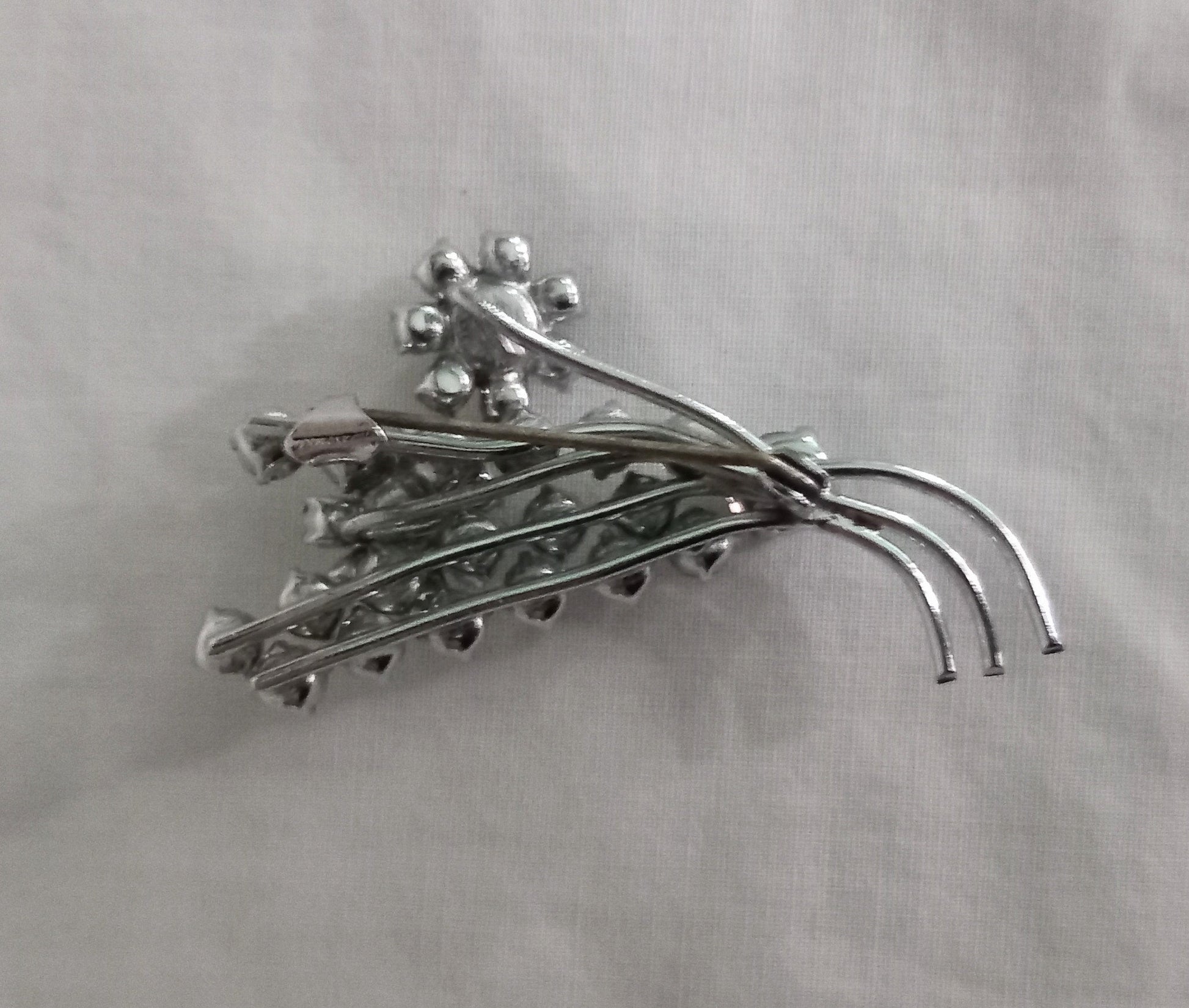 Vintage 1940s/50s Silvertone & Clear Rhinestone Flower Brooch, 5 x 3 cm. Good vintage condition showing minor wear.