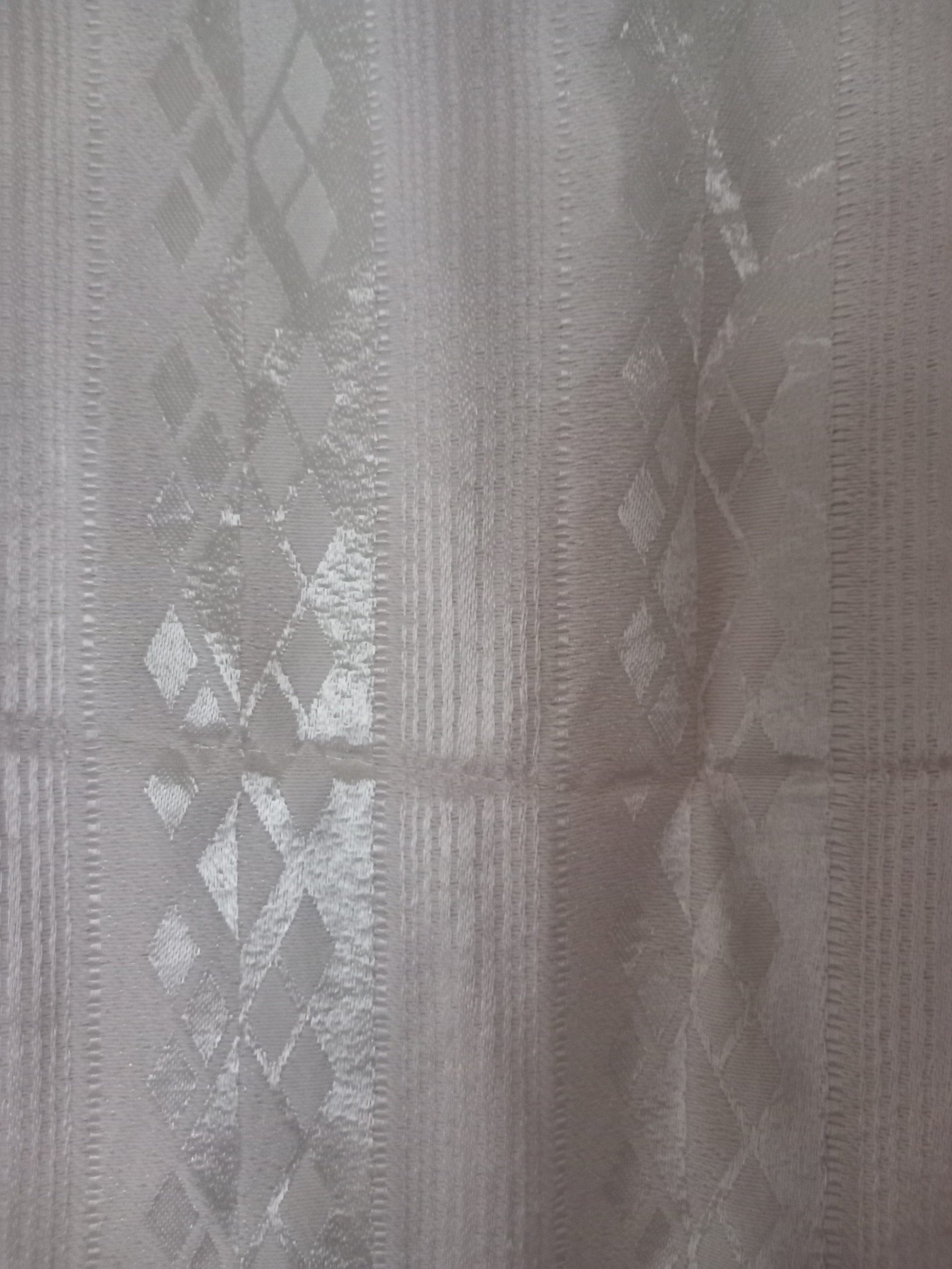 Vintage 1960s/1970s pair of pale pink satinised stripe curtains with tape top, each panel 60" long and 44" wide. These are in good vintage condition but have been stored for a while so may need a wash to freshen them up.