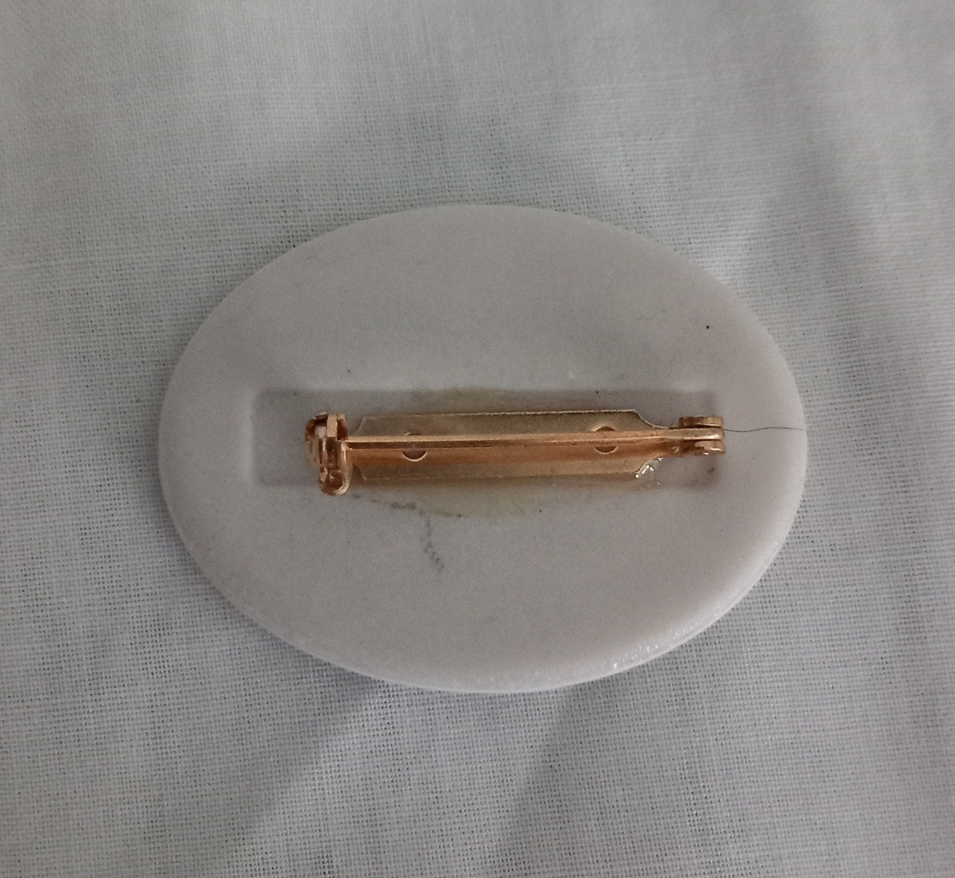 1960s Pink & Blue Oval Bone China Flower Printed Brooch