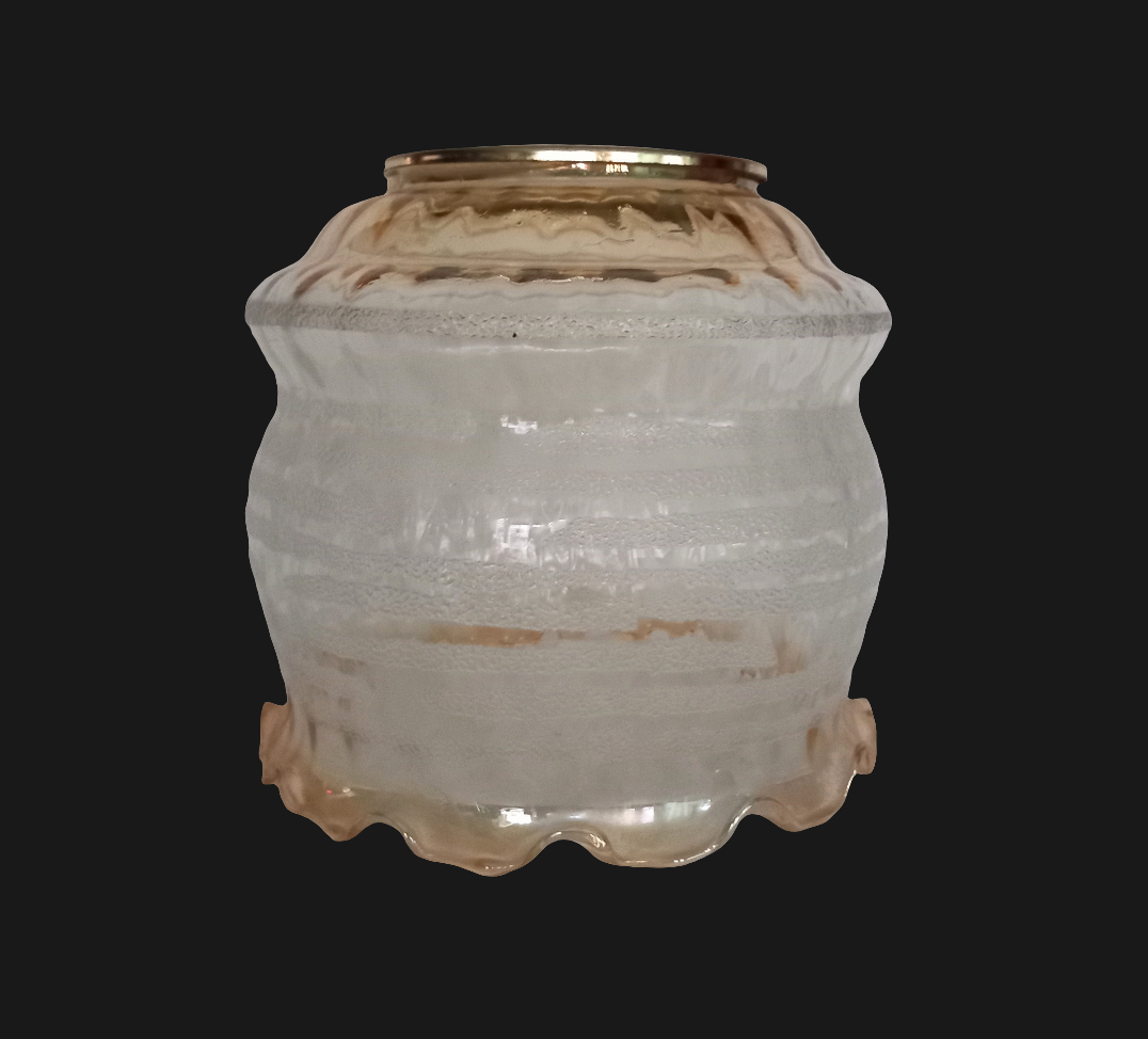 1970s Frosted Stripe & Gold Lustre Glass Pendant Light Shade 6.75"