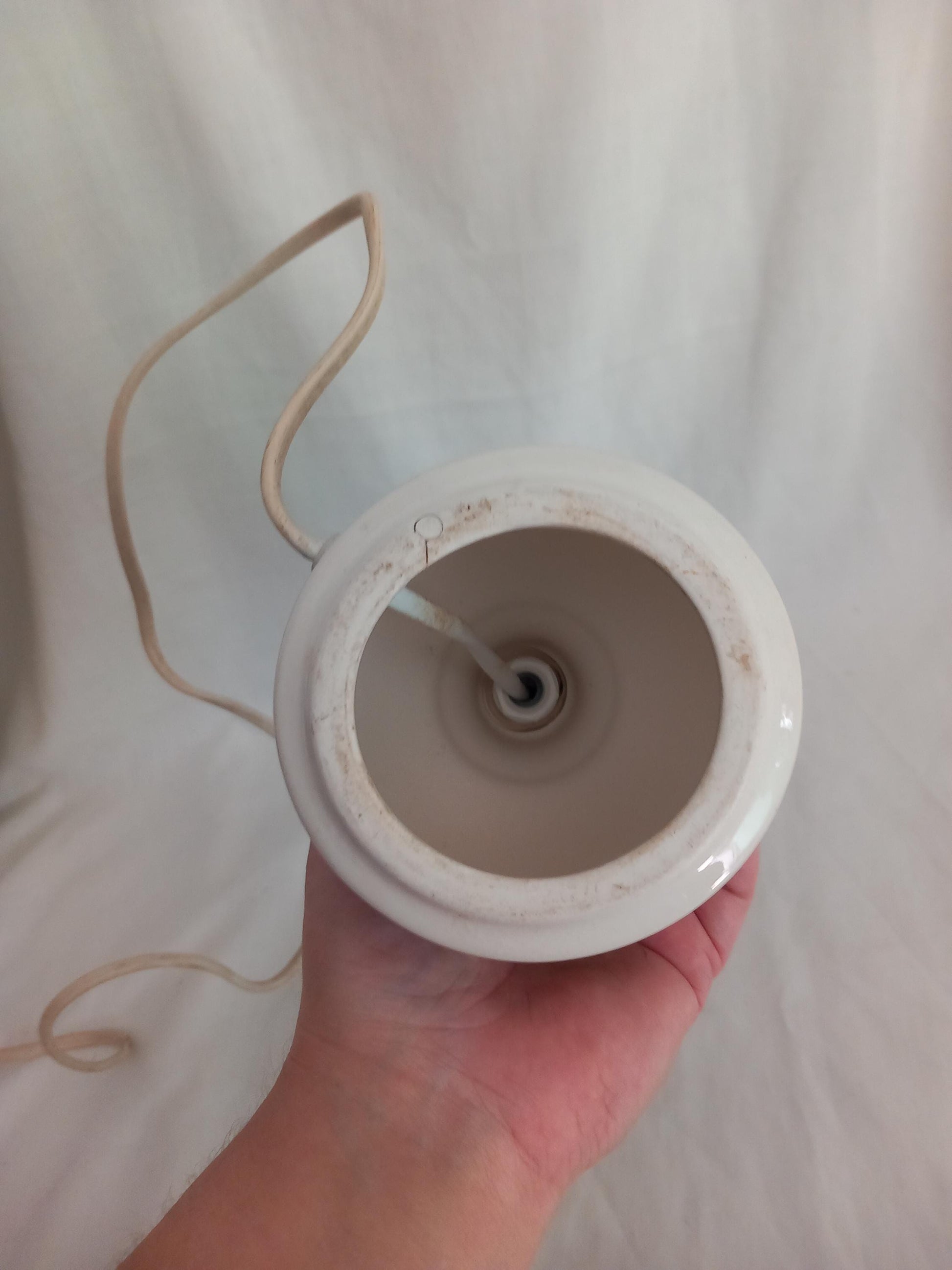 Vintage 1970s green ceramic studio pottery table lamp, 7.75 inches tall. Signed Jersey Pottery inside. In working order with no chips or cracks.