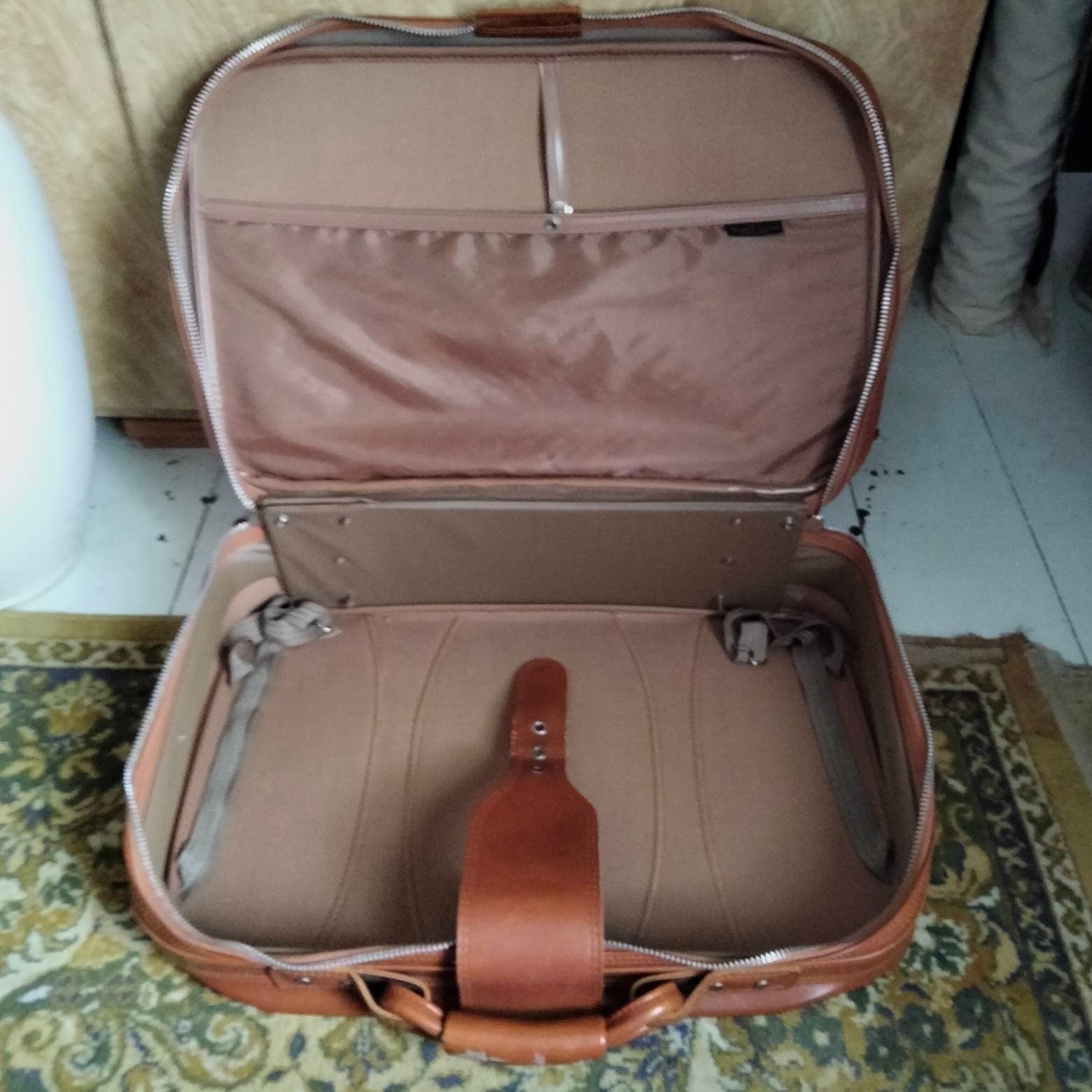 1970s Finesse tan brown leather effect suitcase 22.5"