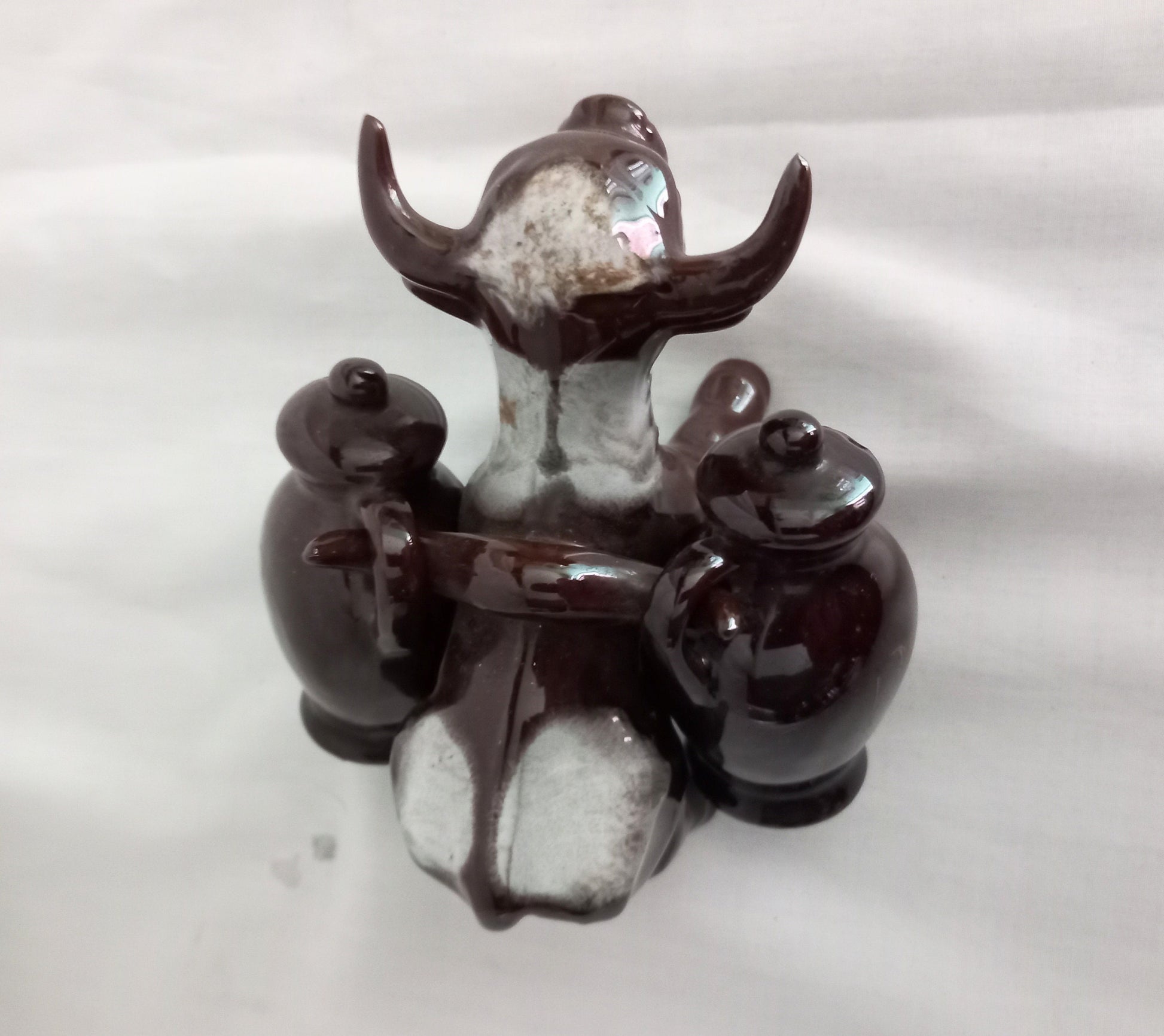1980s brown & white mottled glaze cow design salt and pepper cruet set