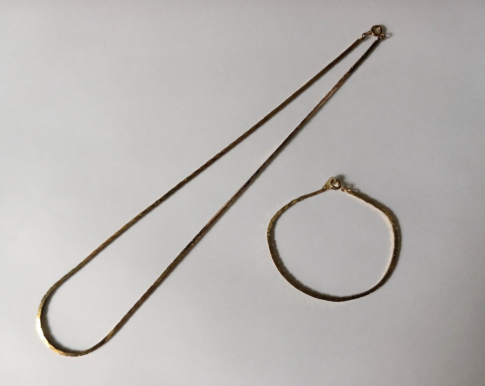 Approx 17 inches from end to end and bracelet 6.5 inches. Good vintage condition.