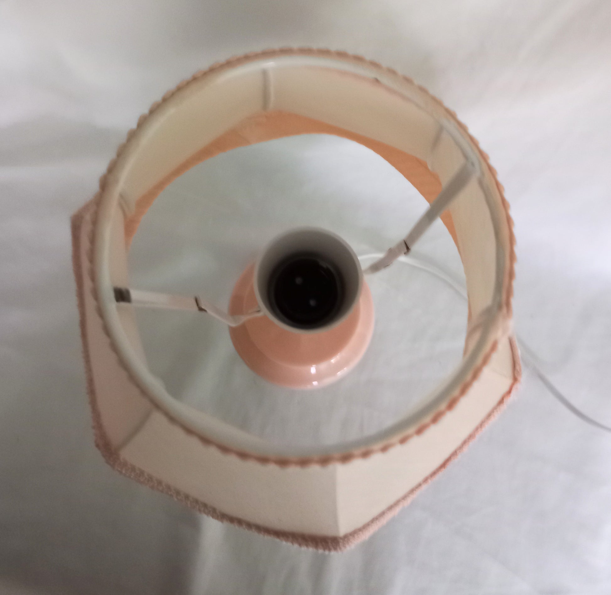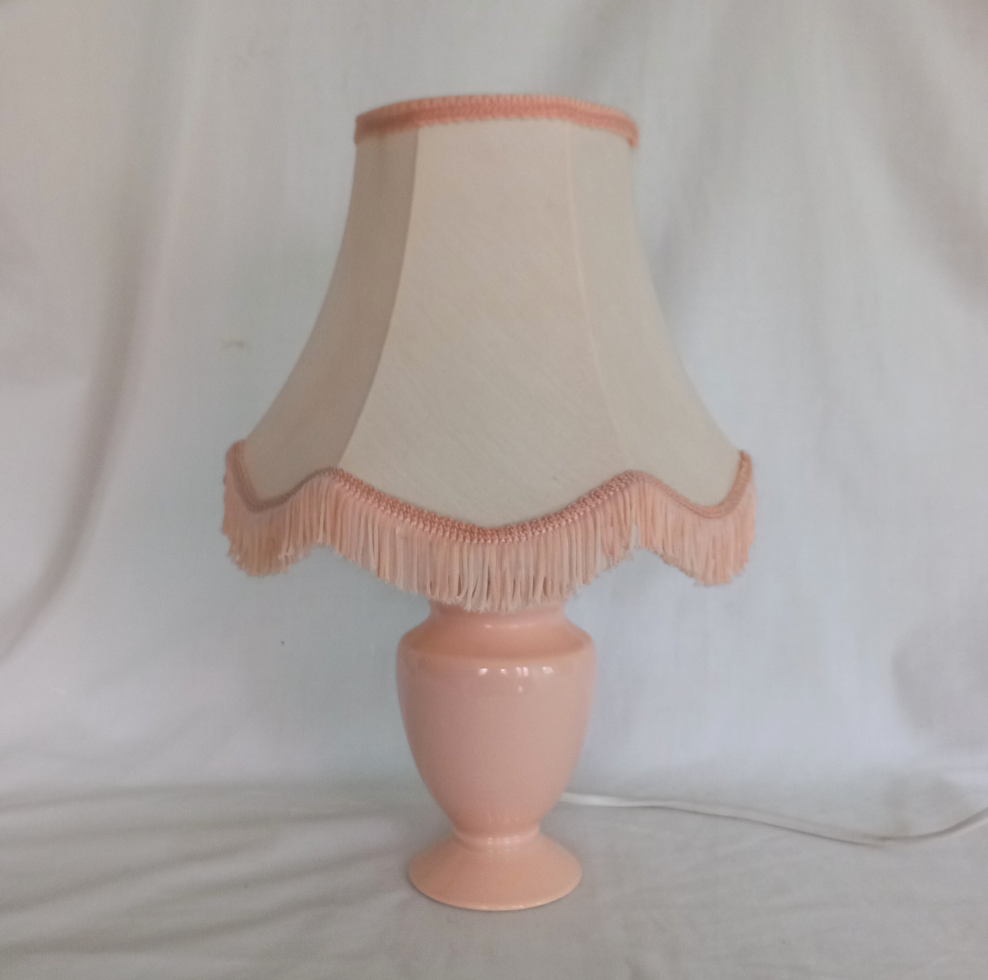 Vintage 1980s Cresswell peach orange ceramic table lamp, 12.5 inches tall including shade. This comes with a matching cream and orange fringed shade. In working order with PAT test sticker that expired Feb 25. Good vintage condition showing minor wear.