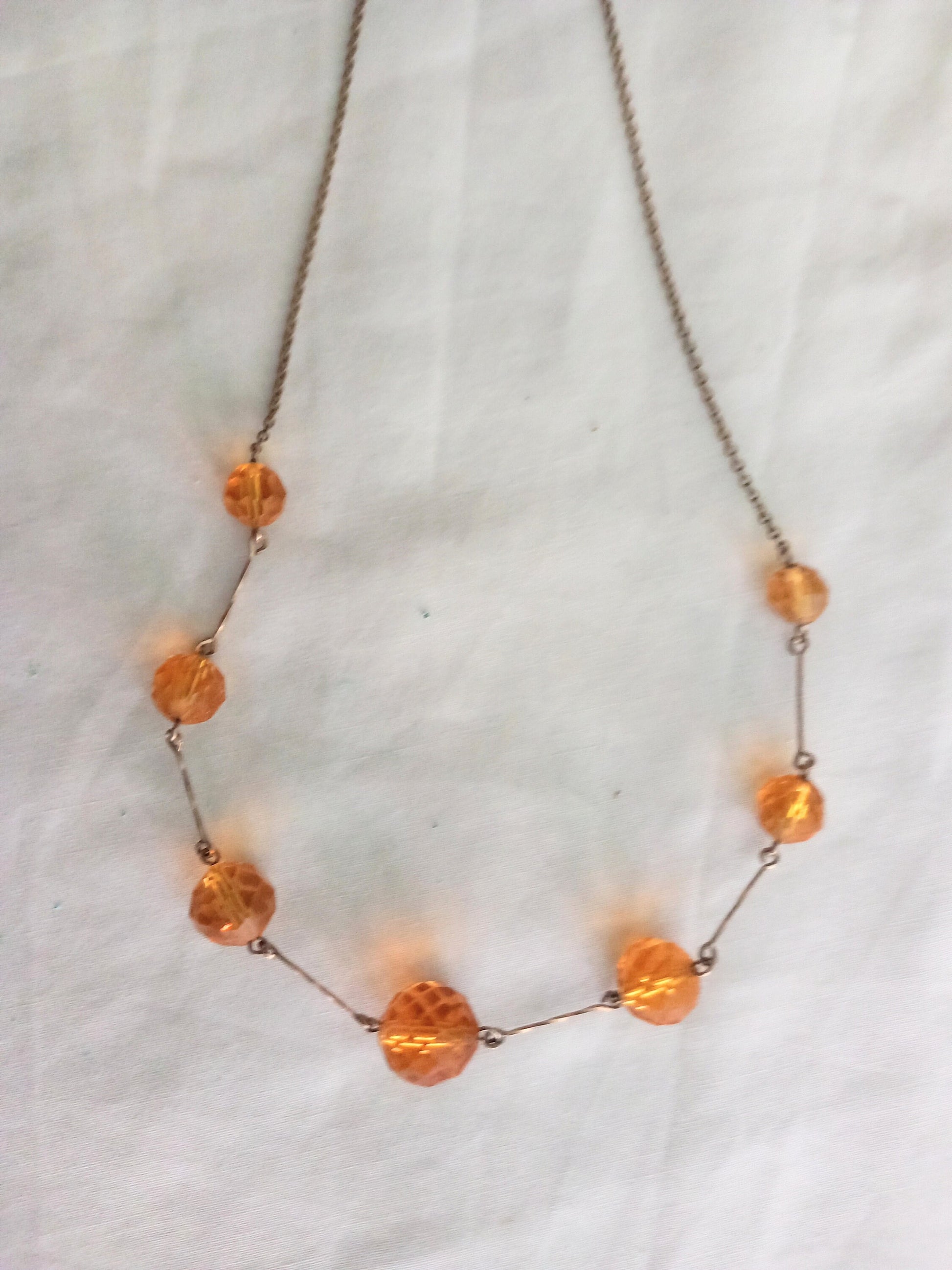 Art Deco orange faceted crystal glass bead & chain necklace