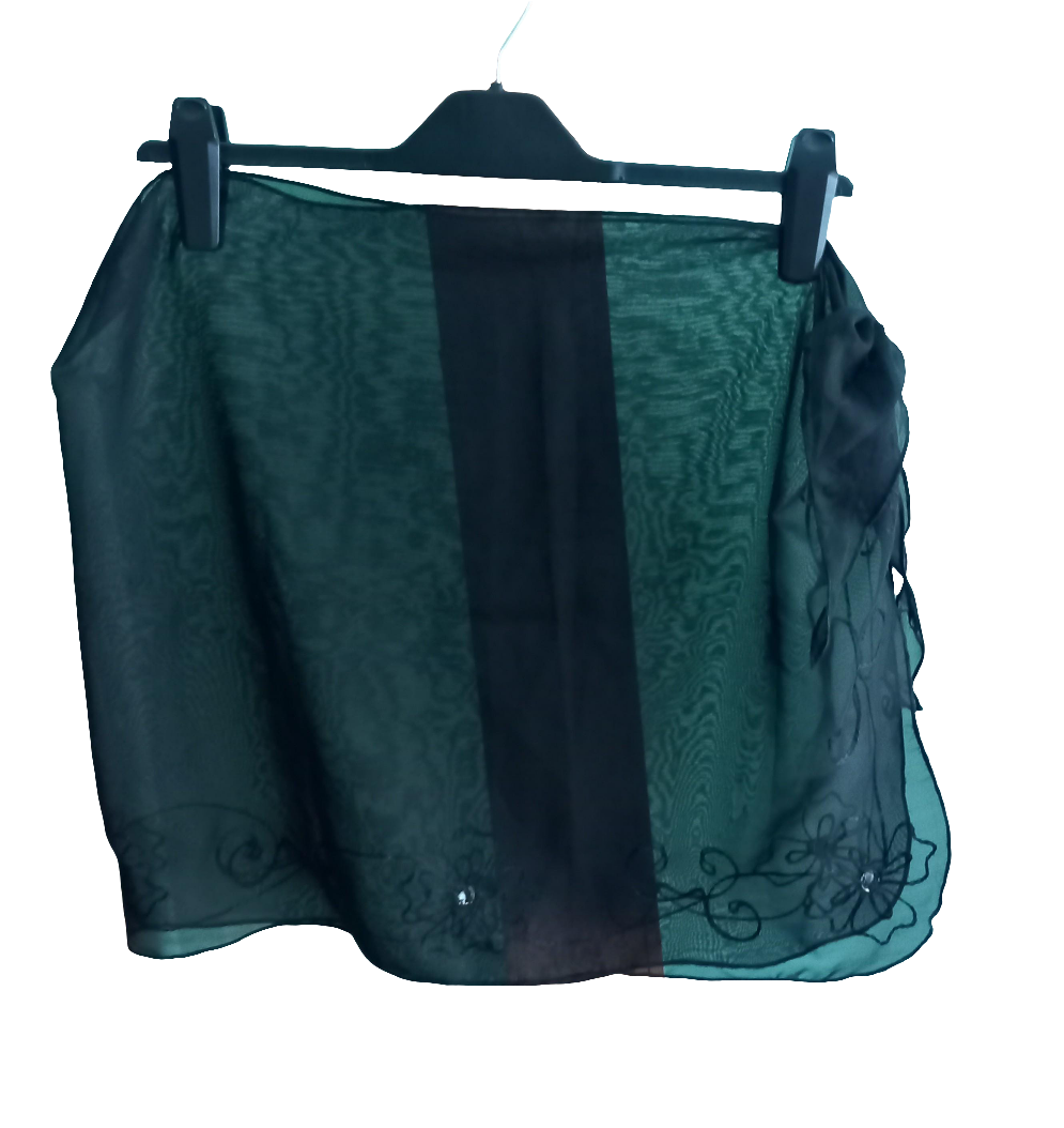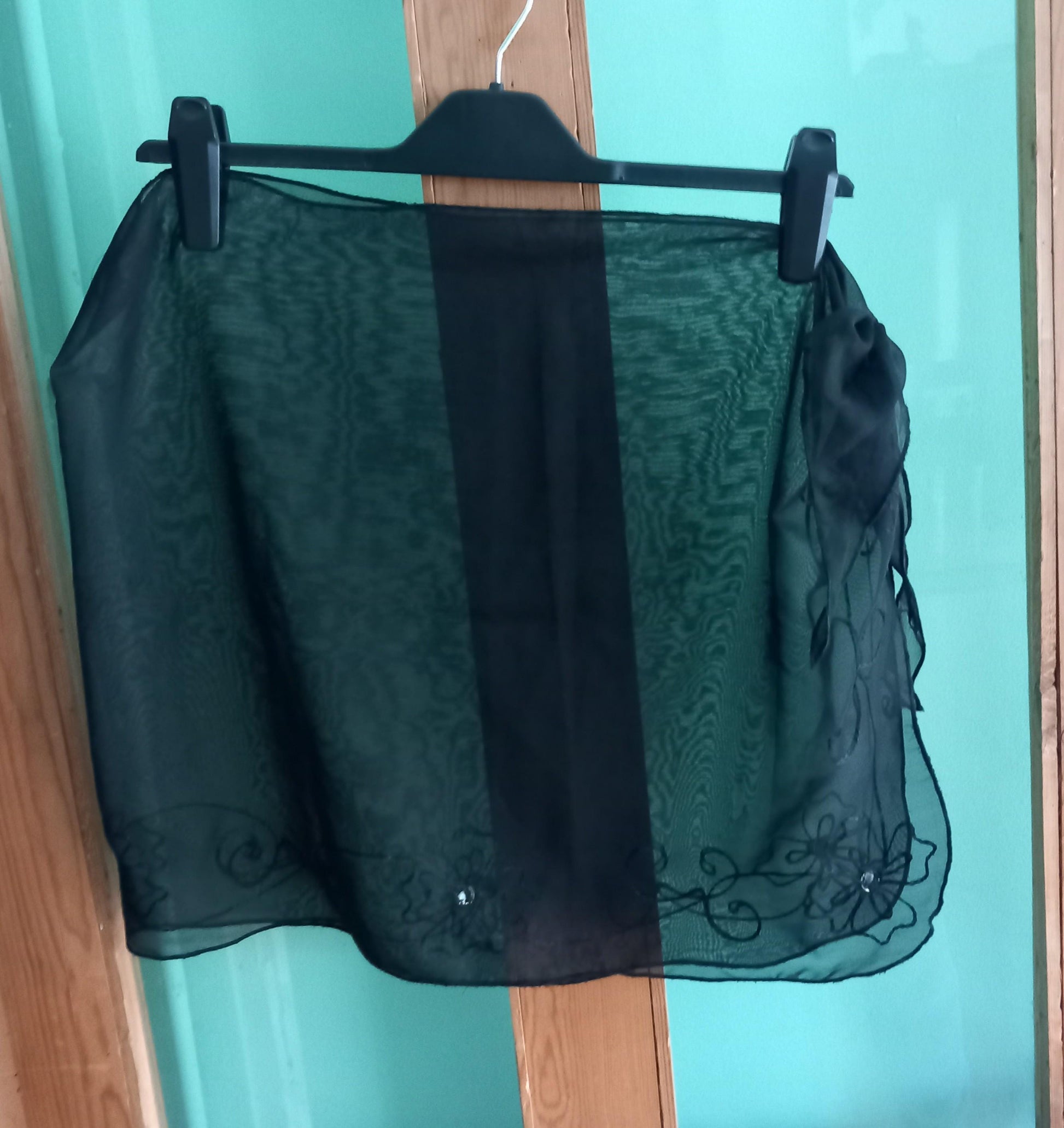 Vintage C2000 Primark black chiffon short/half sarong with embroidered flower and sequin detail, size 14-16. Good condition.