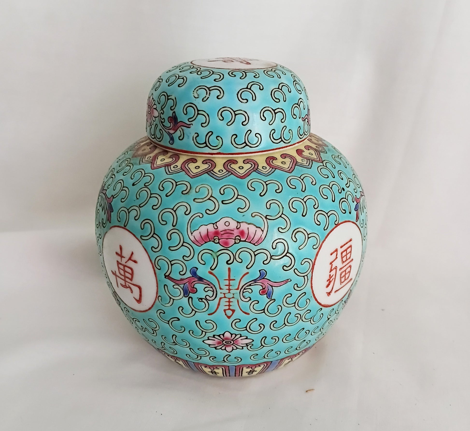 Vintage blue floral ceramic Chinese ginger jar