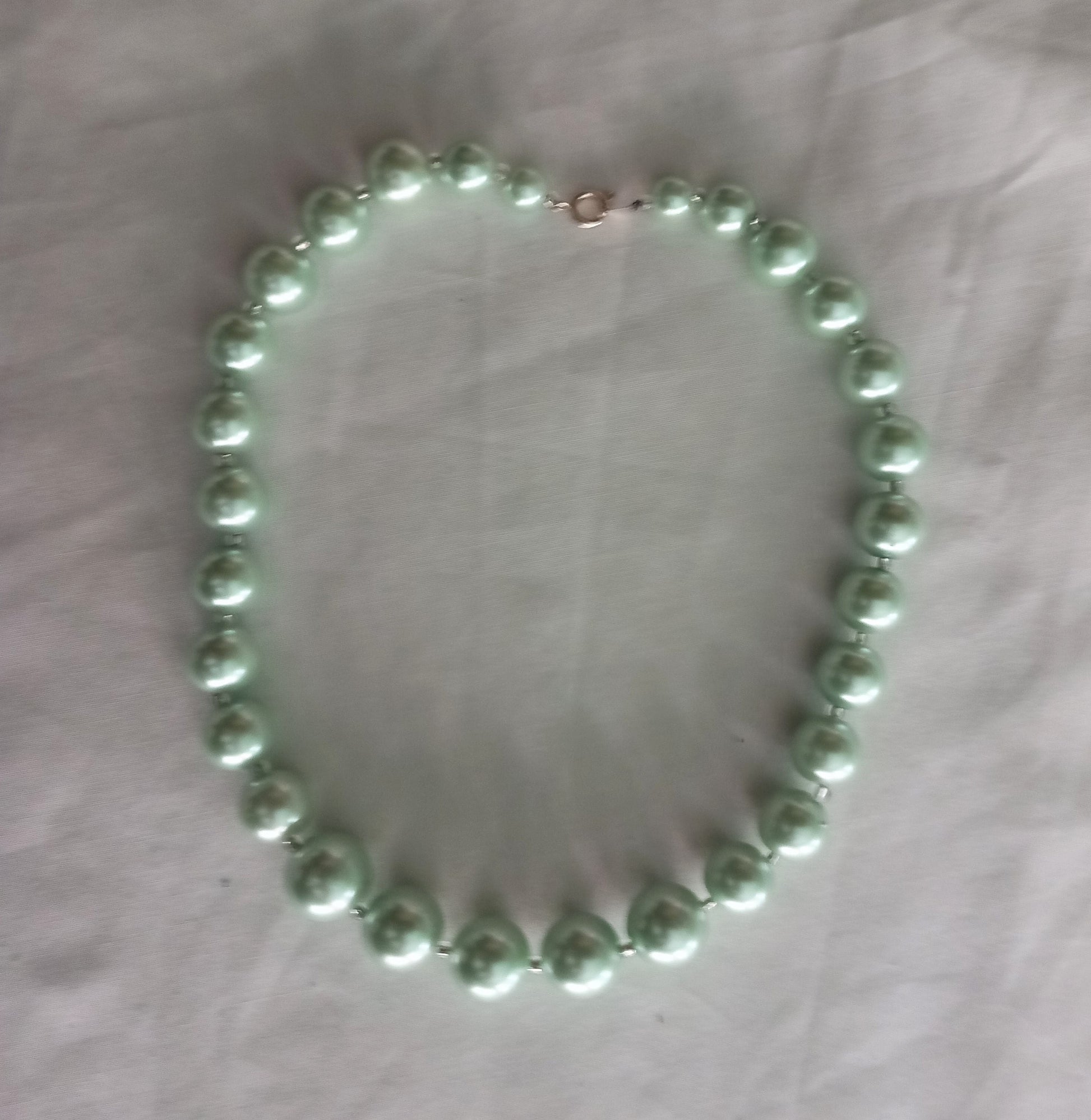 vintage c1960s blue glass pearl graduated bead necklace. Approx 14 inches, good vintage condition showing minor wear. This has been restrung on to jewellery wire.