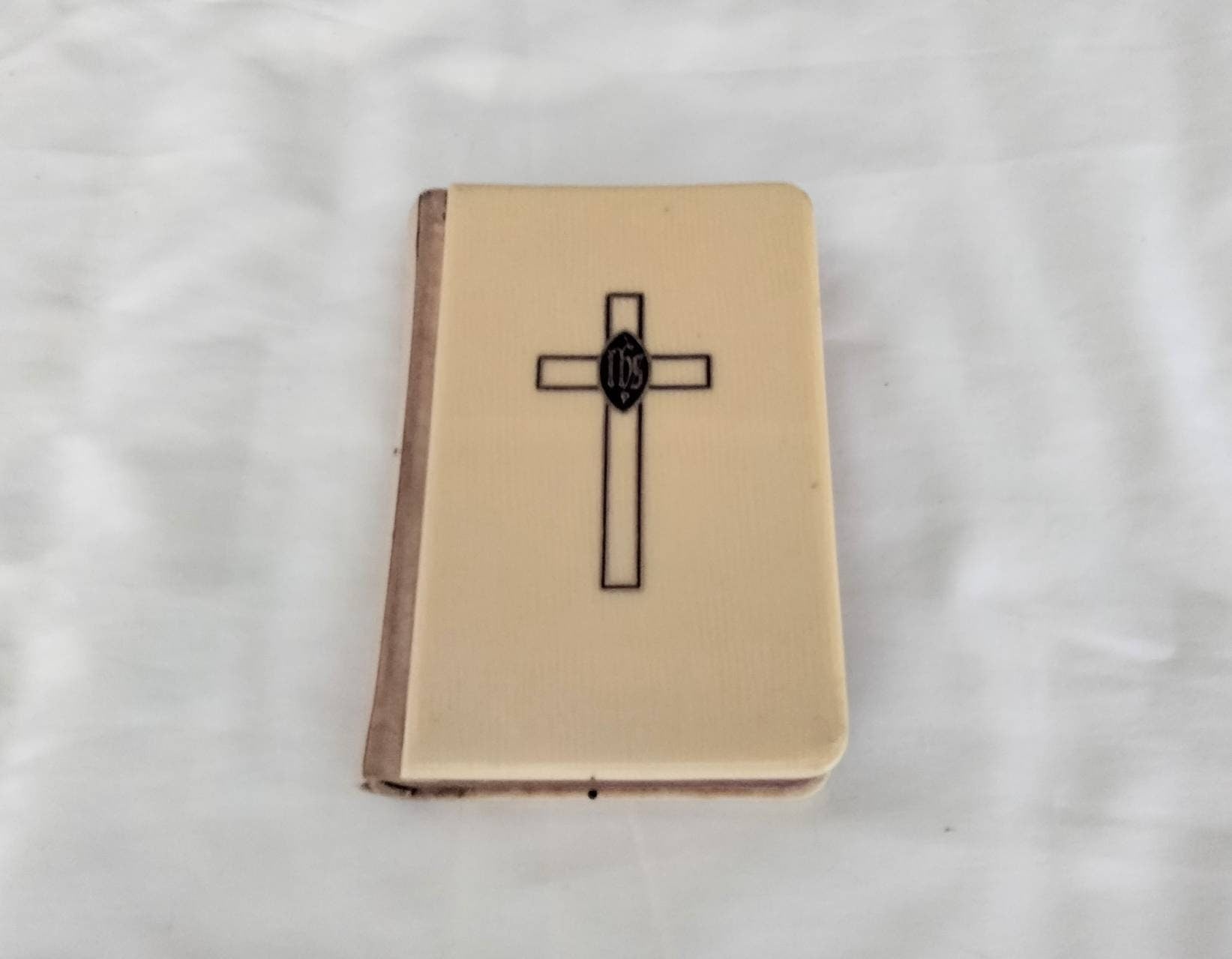 Beautiful little prayer book with early plastic cover simulating ivory, not dated but c1930s. Good vintage condition showing minor age related wear. This would make a lovely gift.