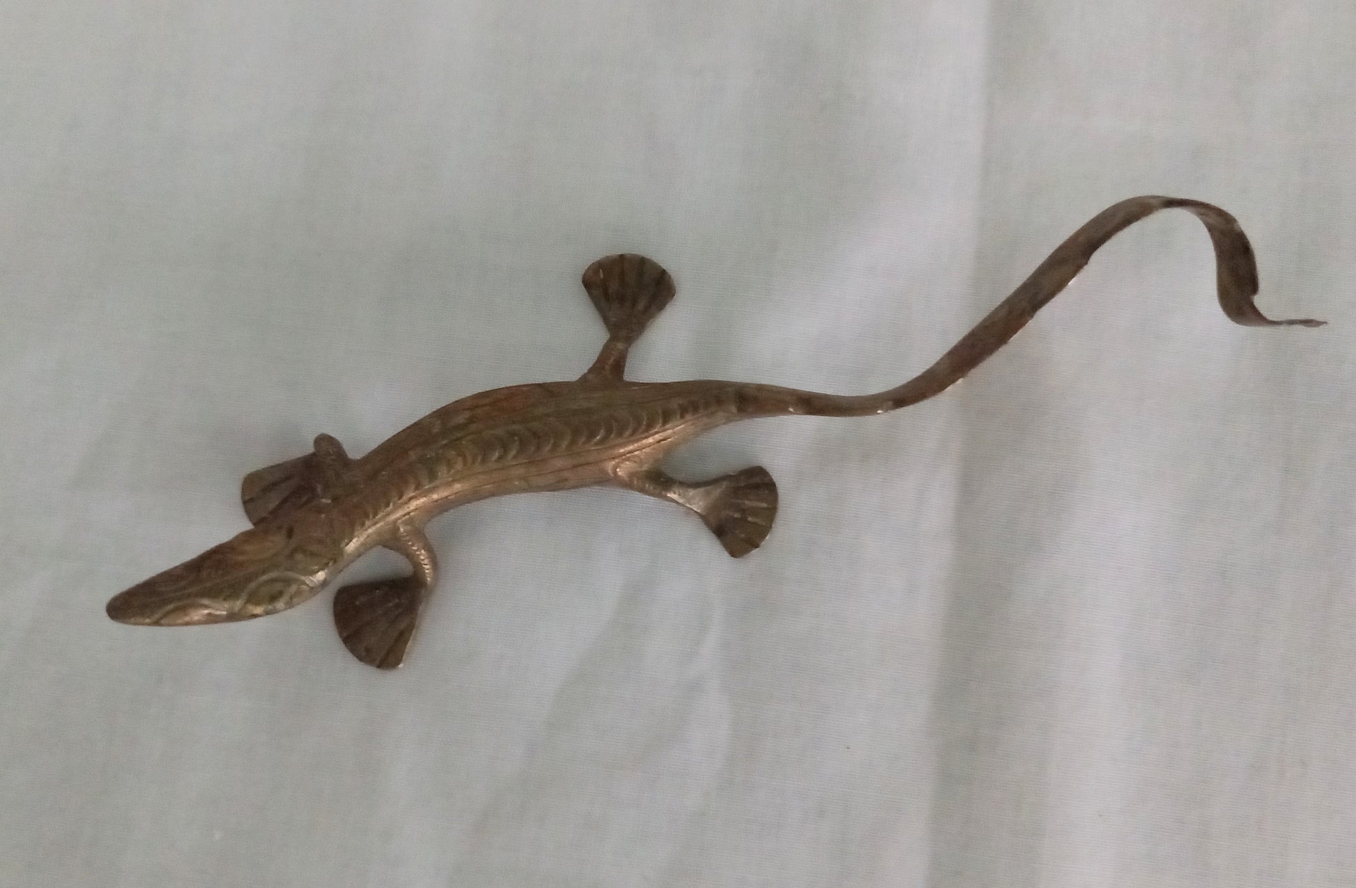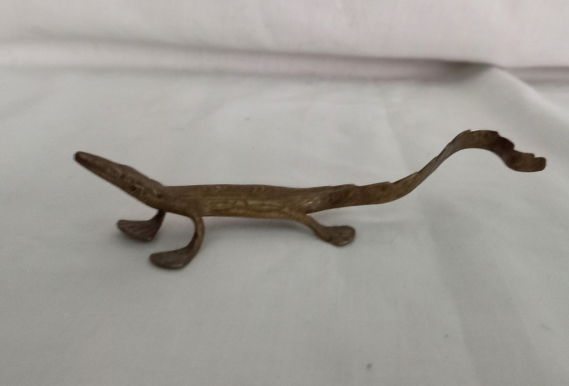 Vintage brass lizard figure, 5 x 1.5 x 1 inches. Good vintage condition.
