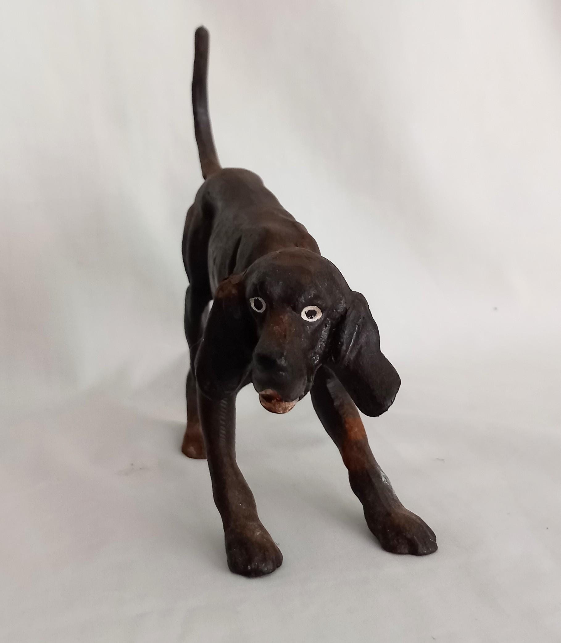 Antique solid cast metal blood hound dog sculpture 8.75"