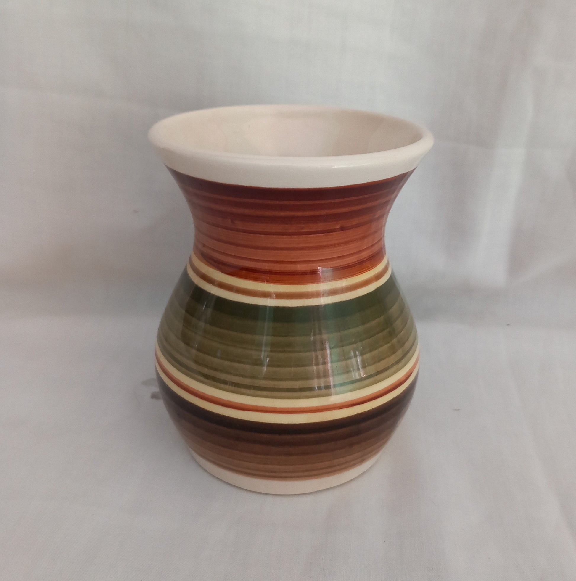 Mid century Dragon Studio green and brown pottery vase from Rhayader Wales 4.75"