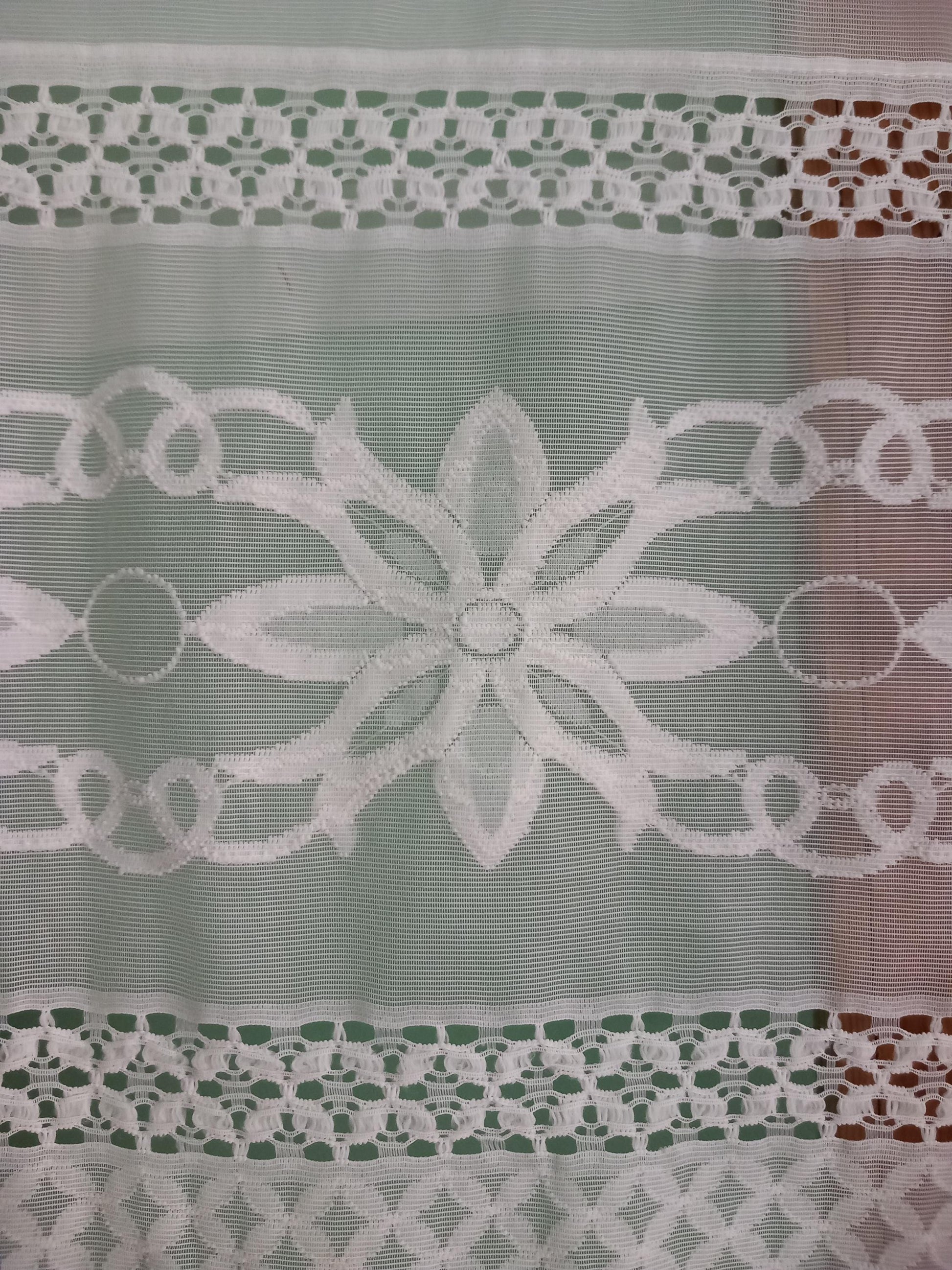 Vintage flower design white net curtain panel, 36" long
