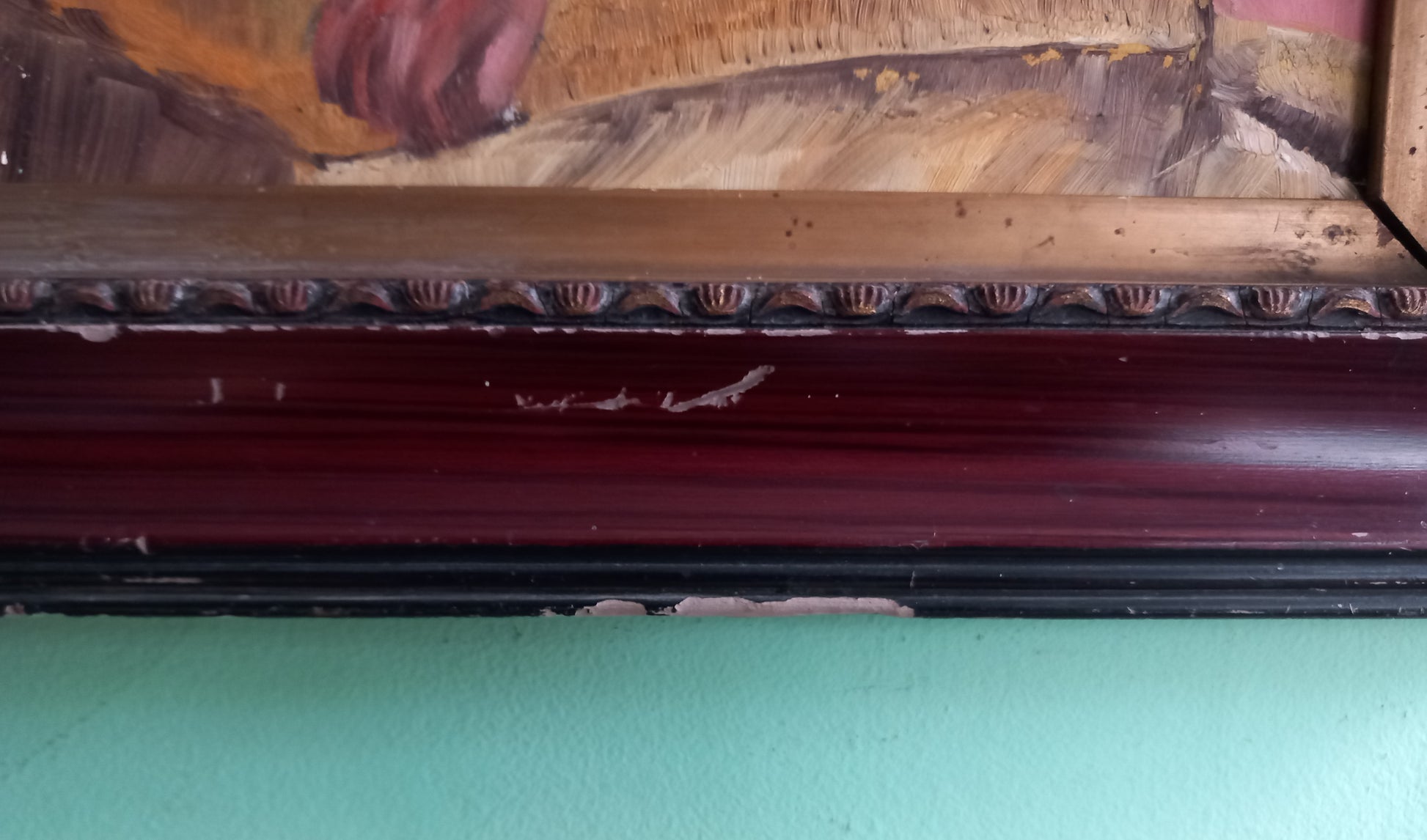 Vintage mid century original oil painting of a nude woman in an antique rustic frame, 20.5 x 17 inches. The painting is in good vintage condition but the frame is distressed as pictured.