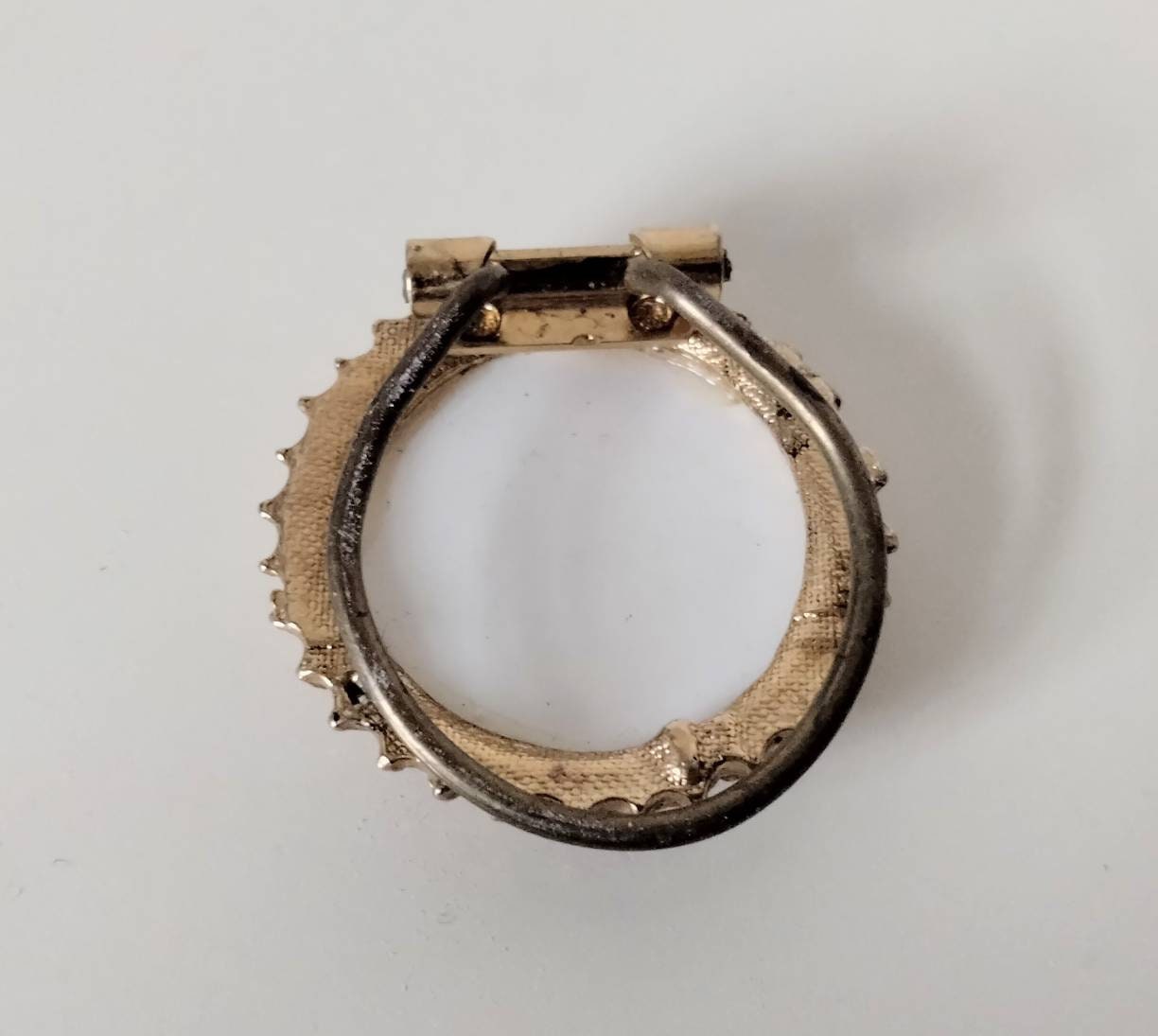 1960s goldtone and ceramic porcelain transfer printed Regency couple scene scarf clip