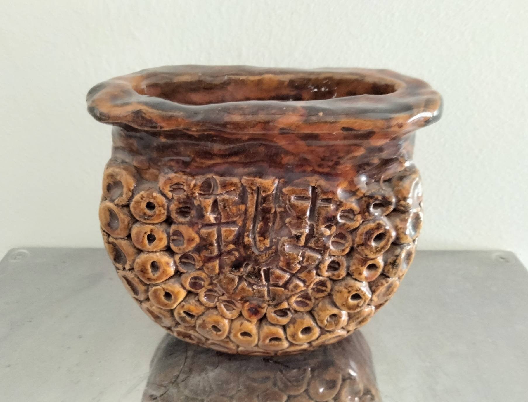 1990s hand made primitive studio pottery brown textured vase