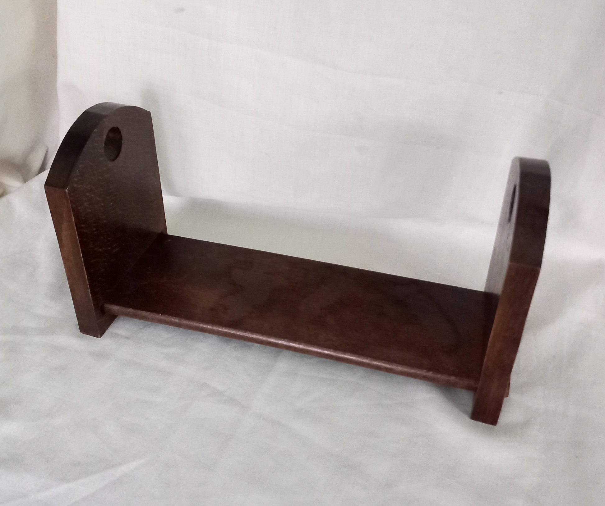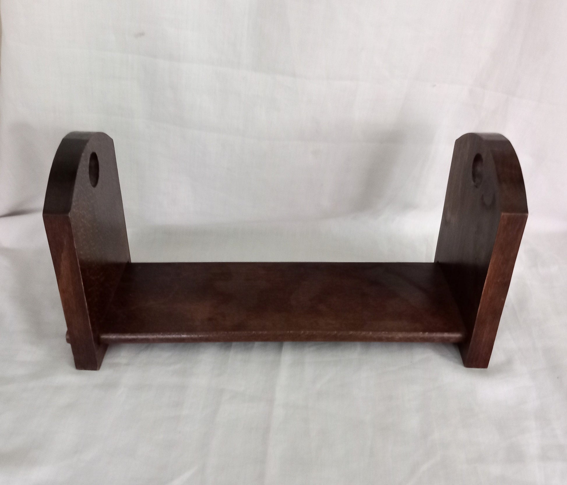 Vintage small wooden freestanding book stand which is adjustable and also folds flat, 12.75 x 6.5 x 4.5 inches. Good vintage condition showing minor wear.