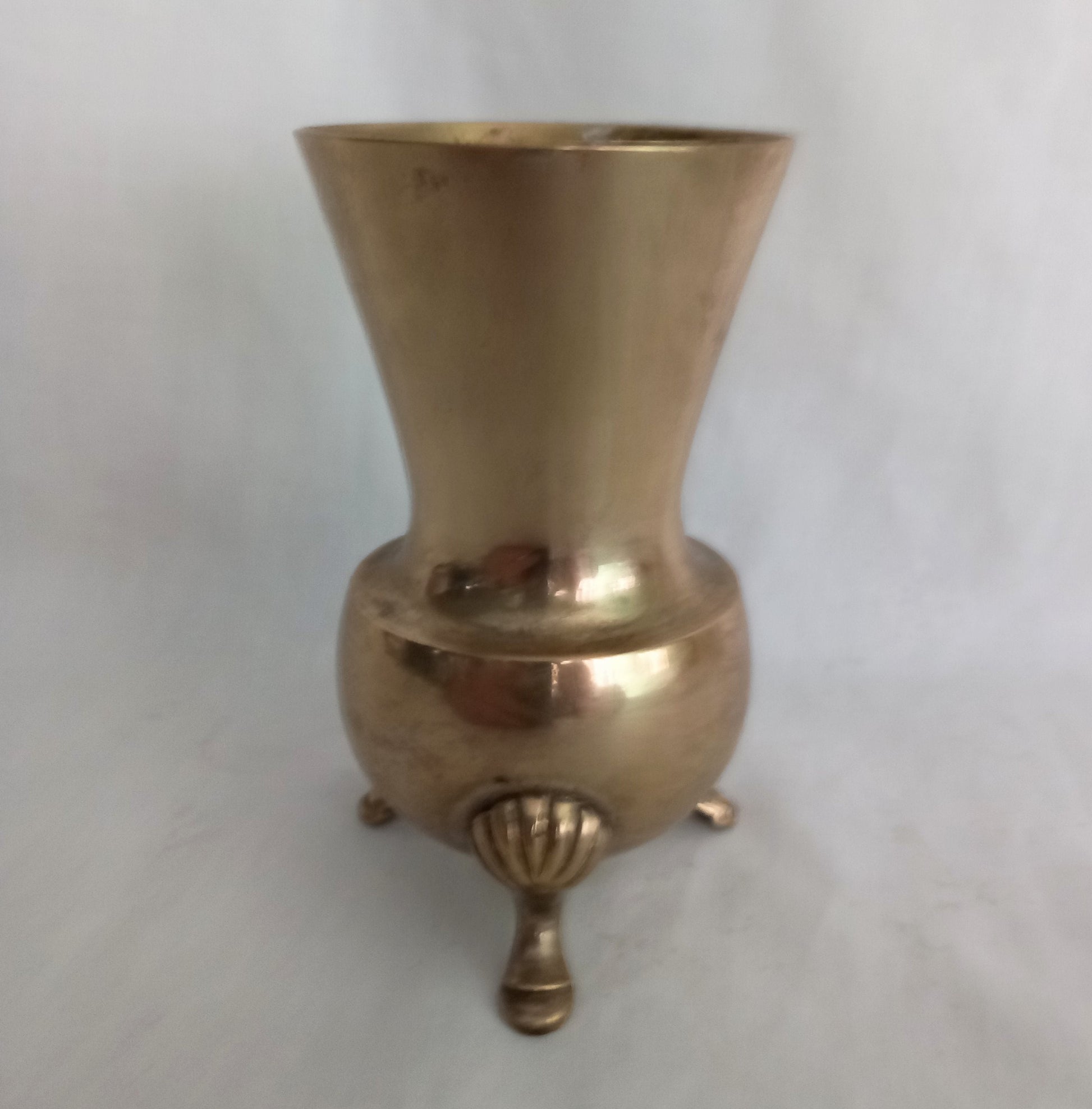 Vintage Hoof Footed Brass Vase 4.75 inches tall. Good condition with no damage.