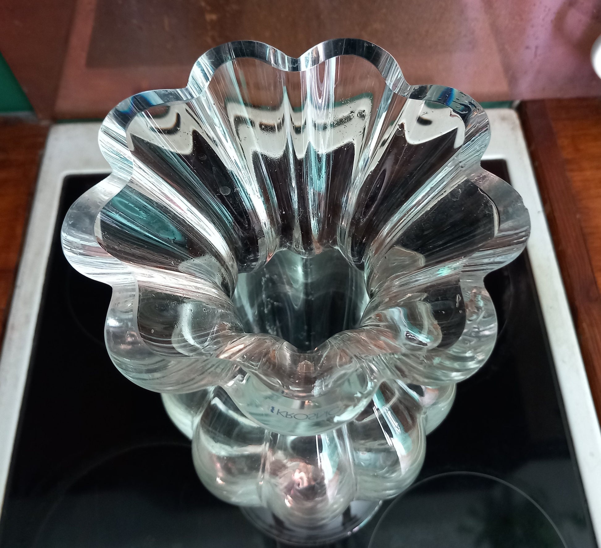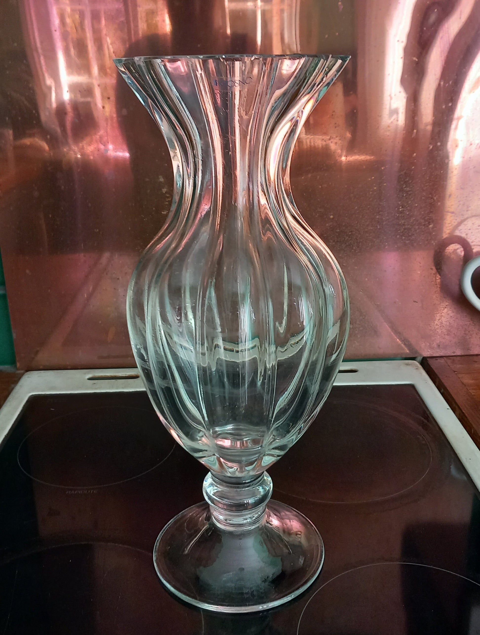 Late 20th century Krosno, Poland heavy clear glass footed vase