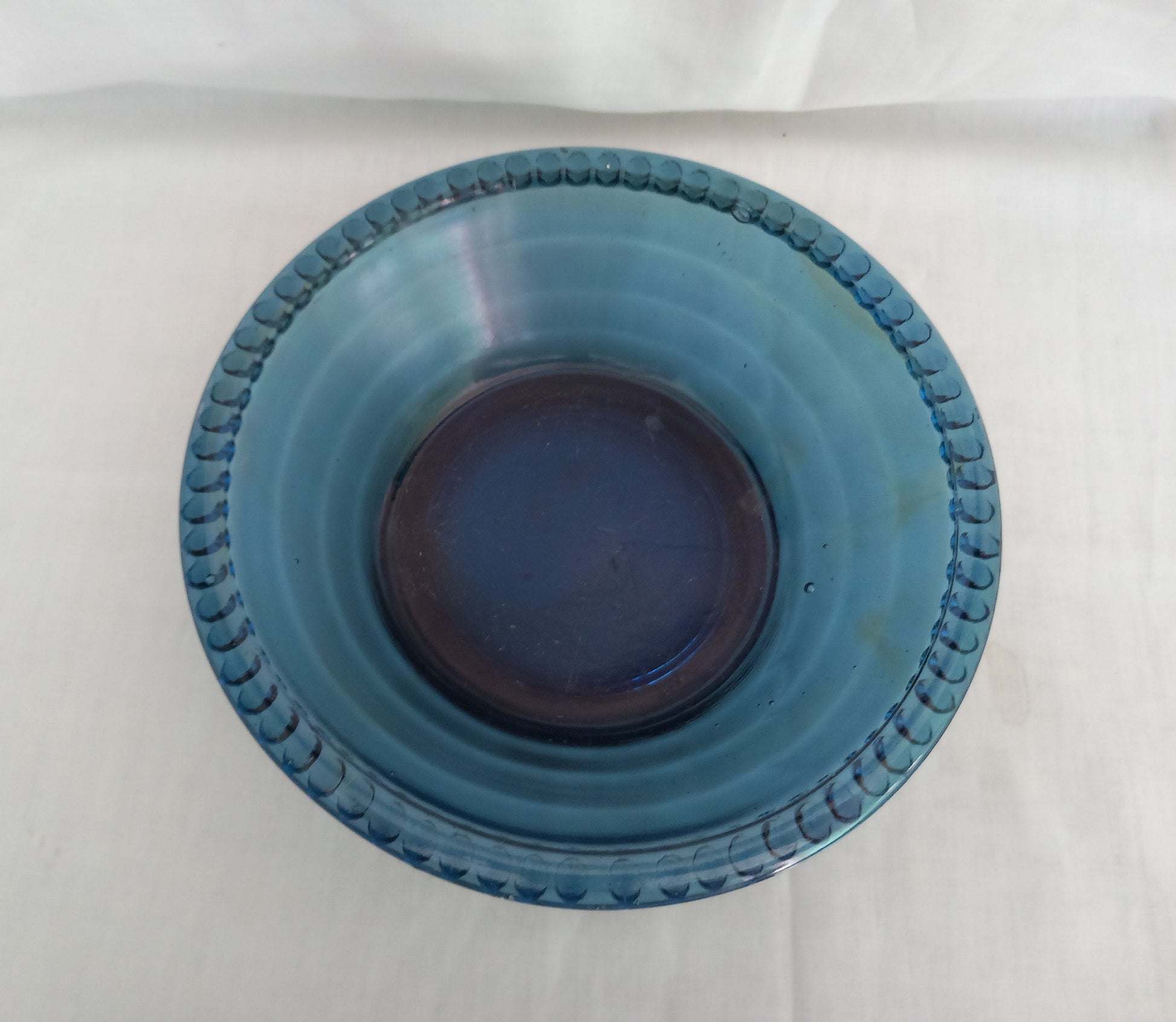 Vintage mid century blue pressed glass fruit dessert bowl dish 8.25"