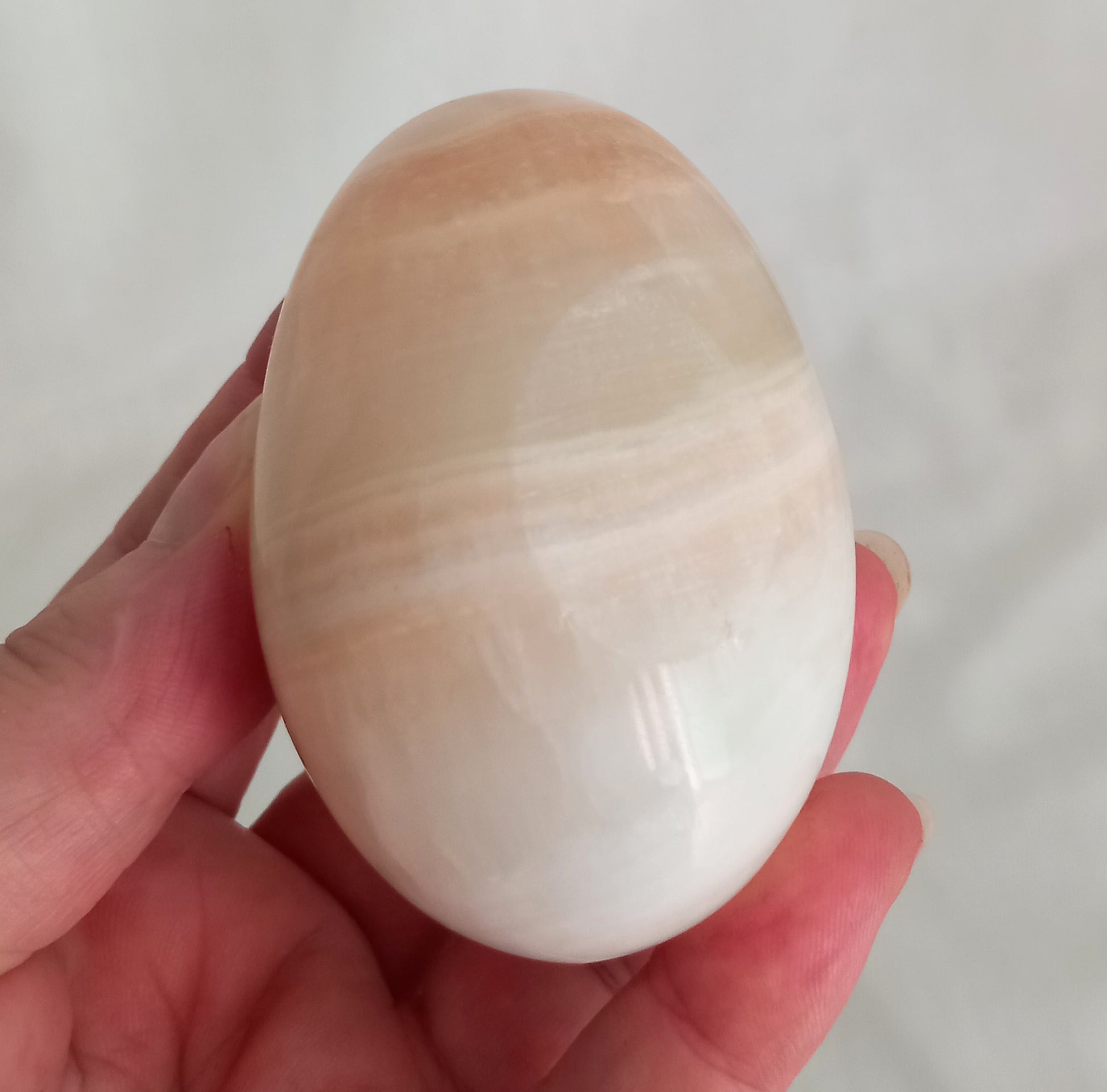 Vintage Mid Century green & orange striped onyx stone egg, 7 x 5cm. Good vintage condition.