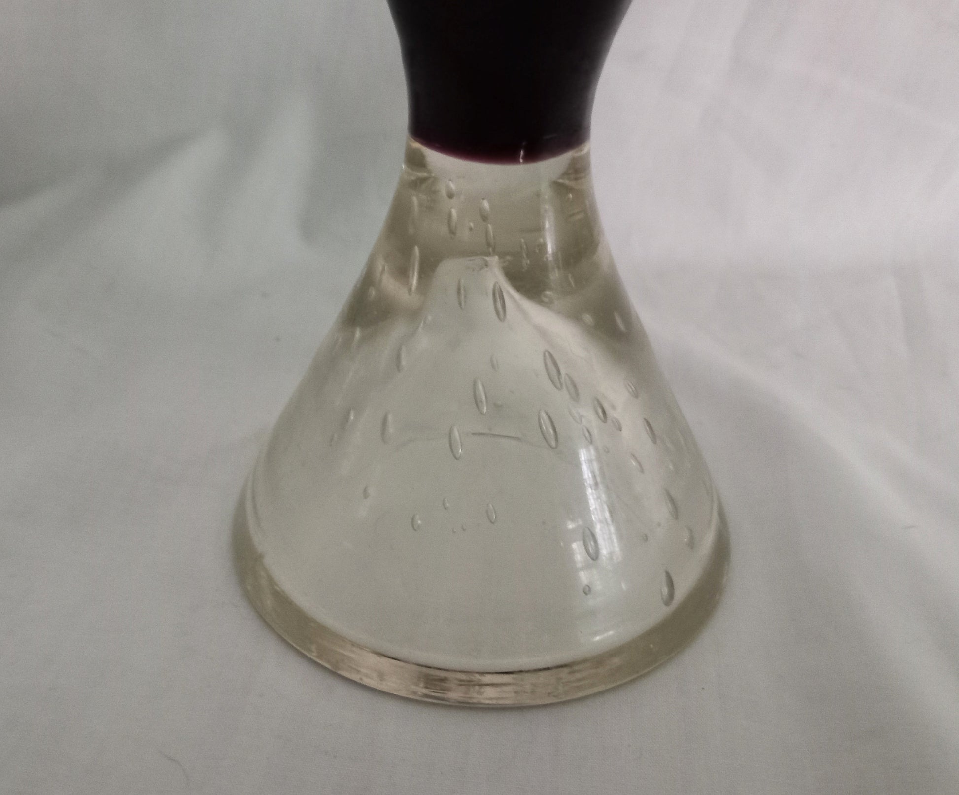 Vintage Mid Century Aseda purple and clear bubble base glass vase, 13.75 inches. Good condition with no chips or cracks.