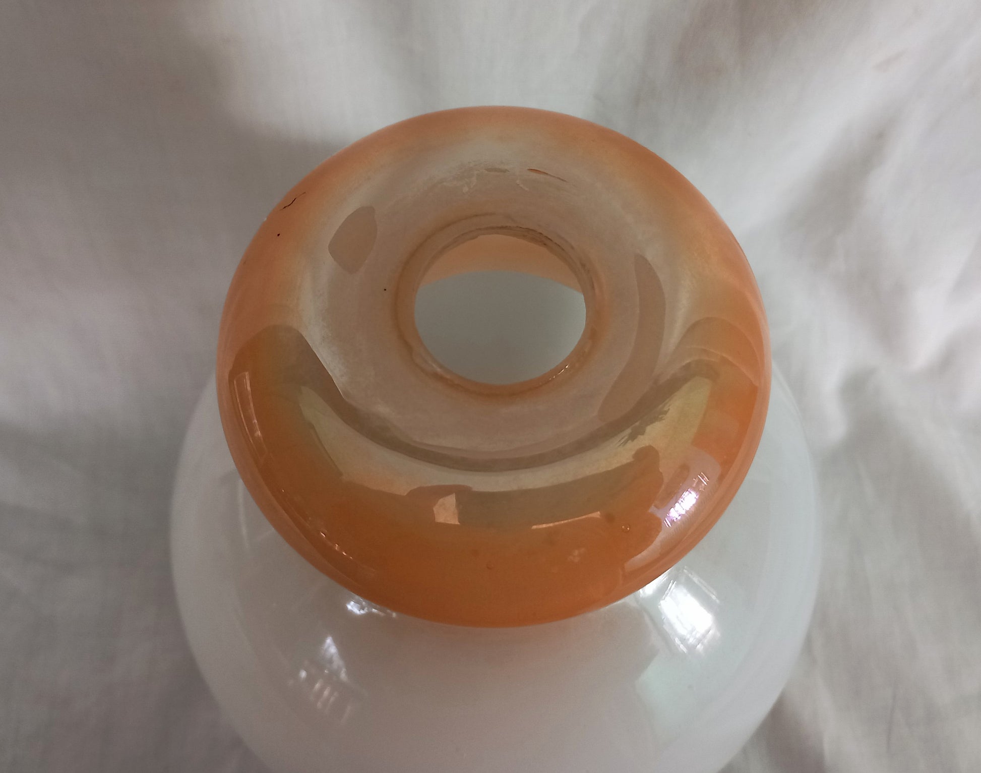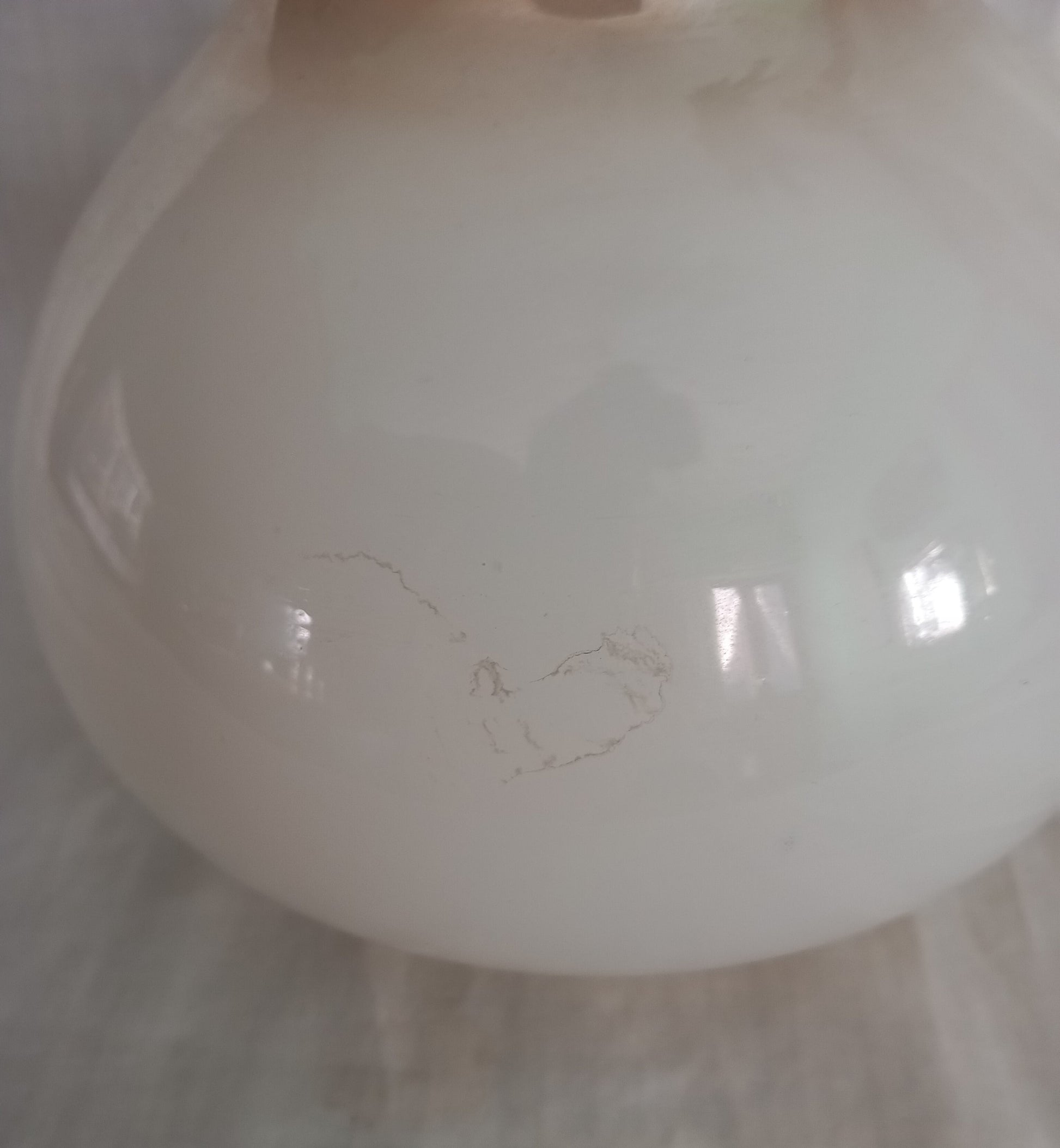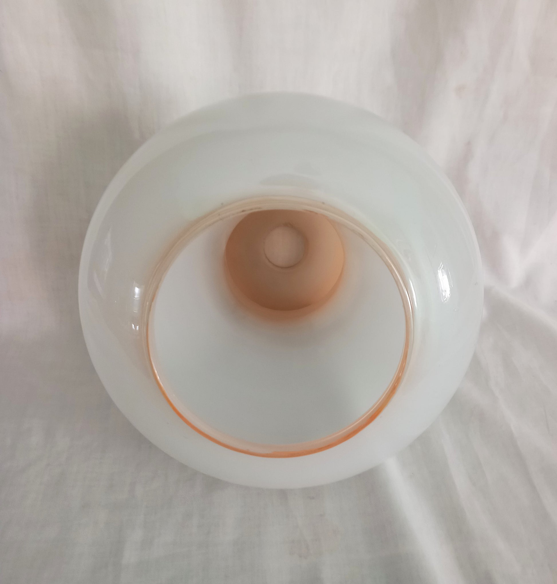 Vintage mid century white & brown lustre glass pendant shade, 8 inches tall and 6.5 inches wide. Good vintage condition with no chips or cracks, it has a scuff on the side as pictured.