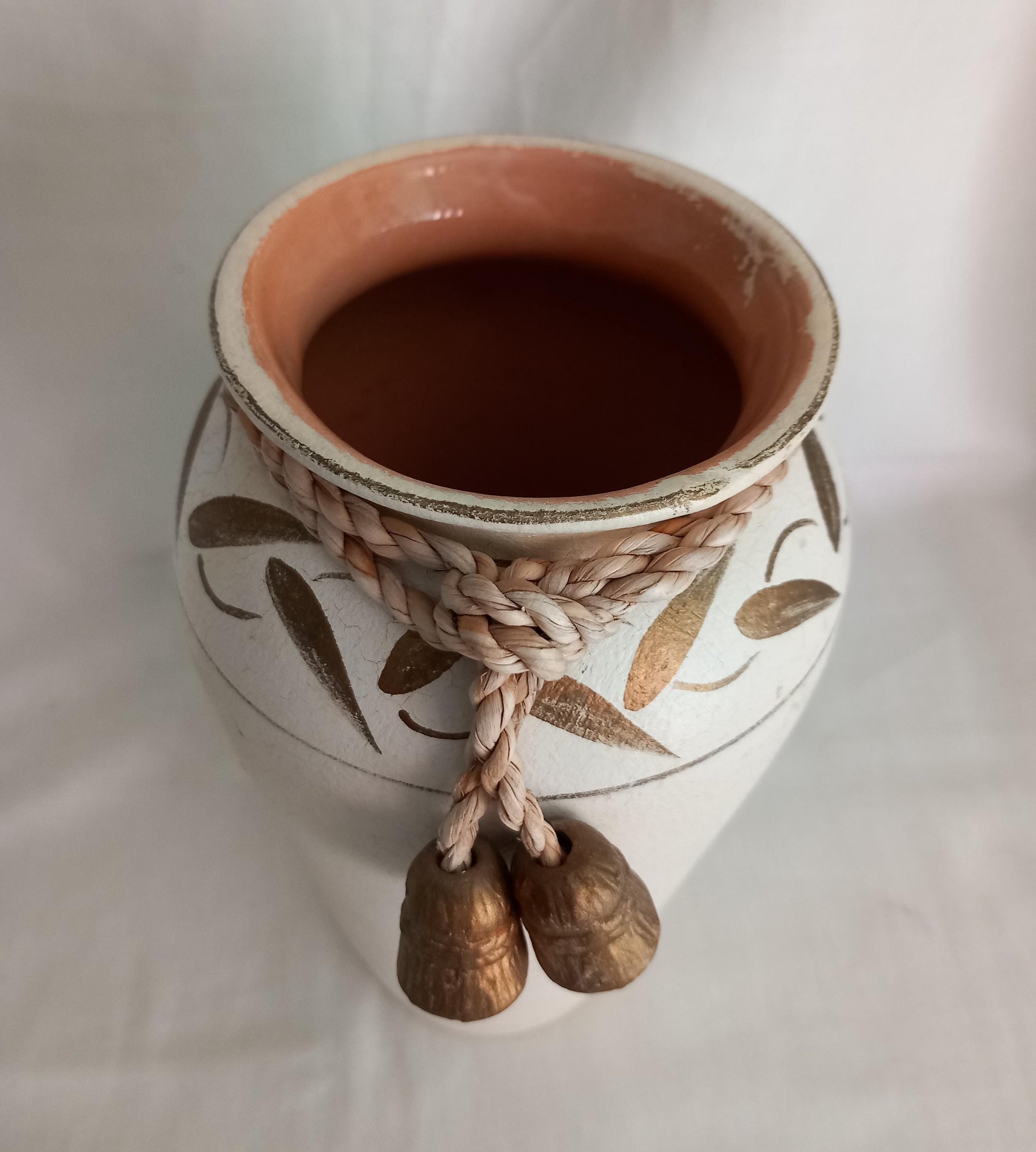 Vintage c1990s/2000s Mondian vase with cream crackle glaze and gold detail, 8.75 inches tall. Good condition with no chips or cracks.