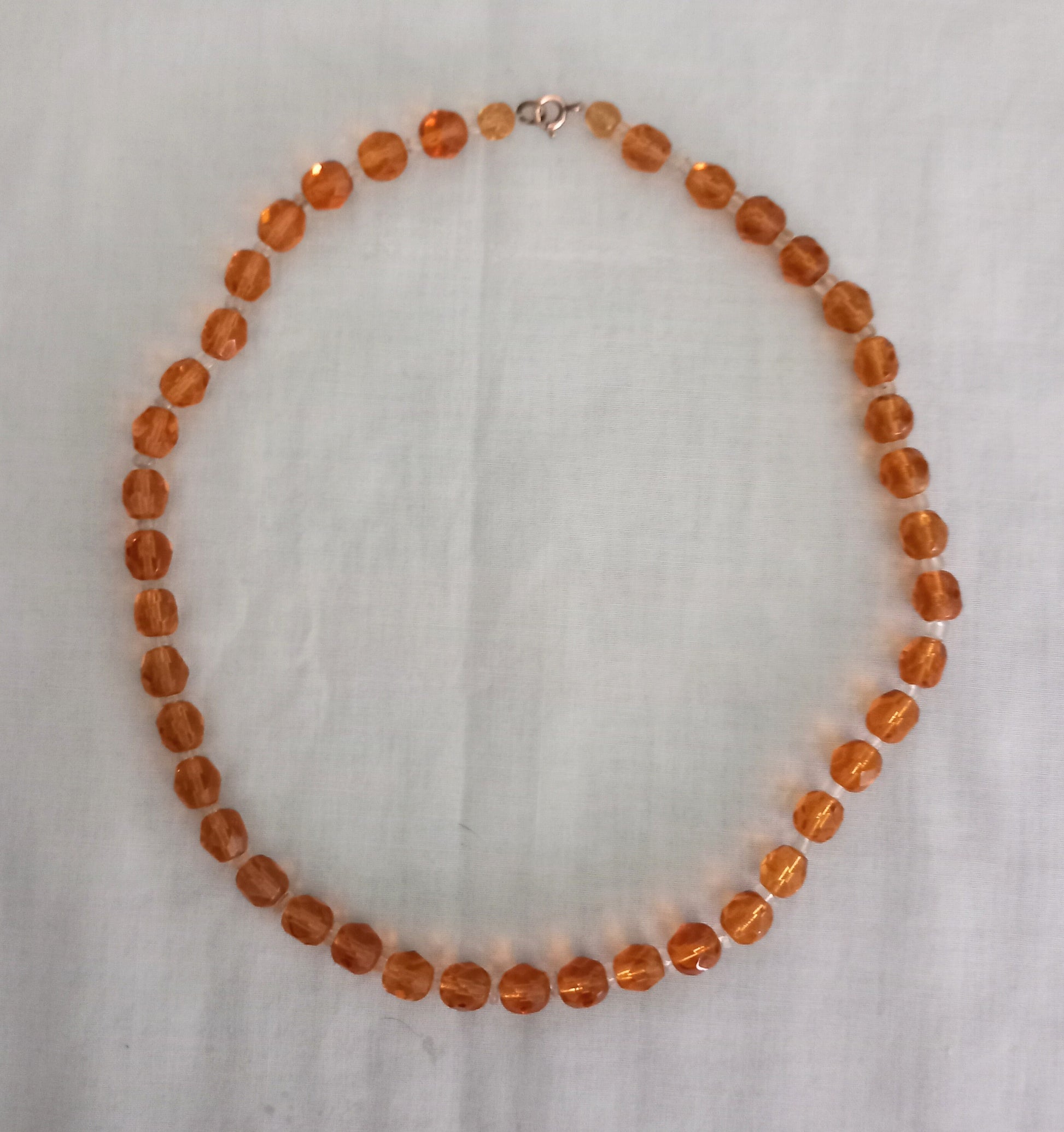 Vintage orange faceted crystal glass bead necklace 16 inches, good vintage condition showing minor wear.