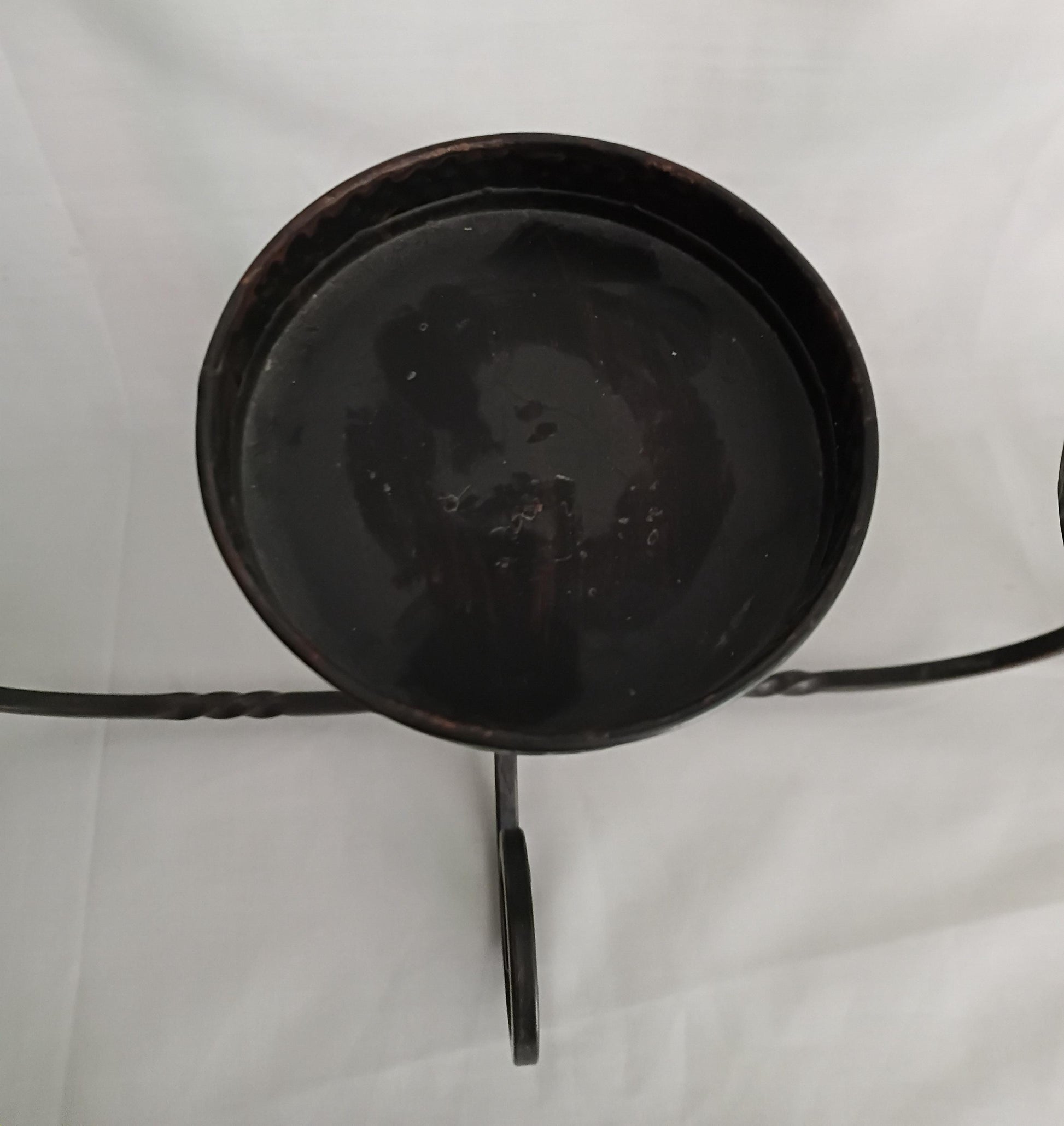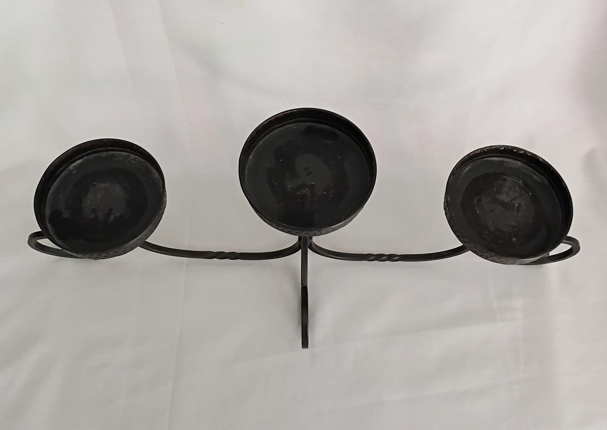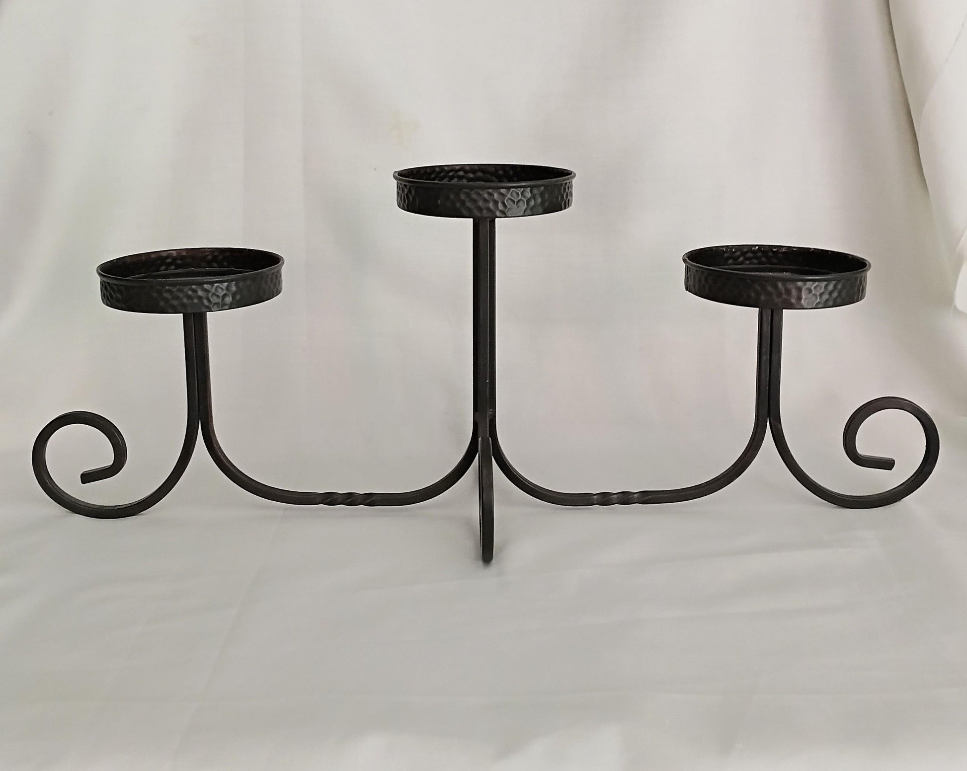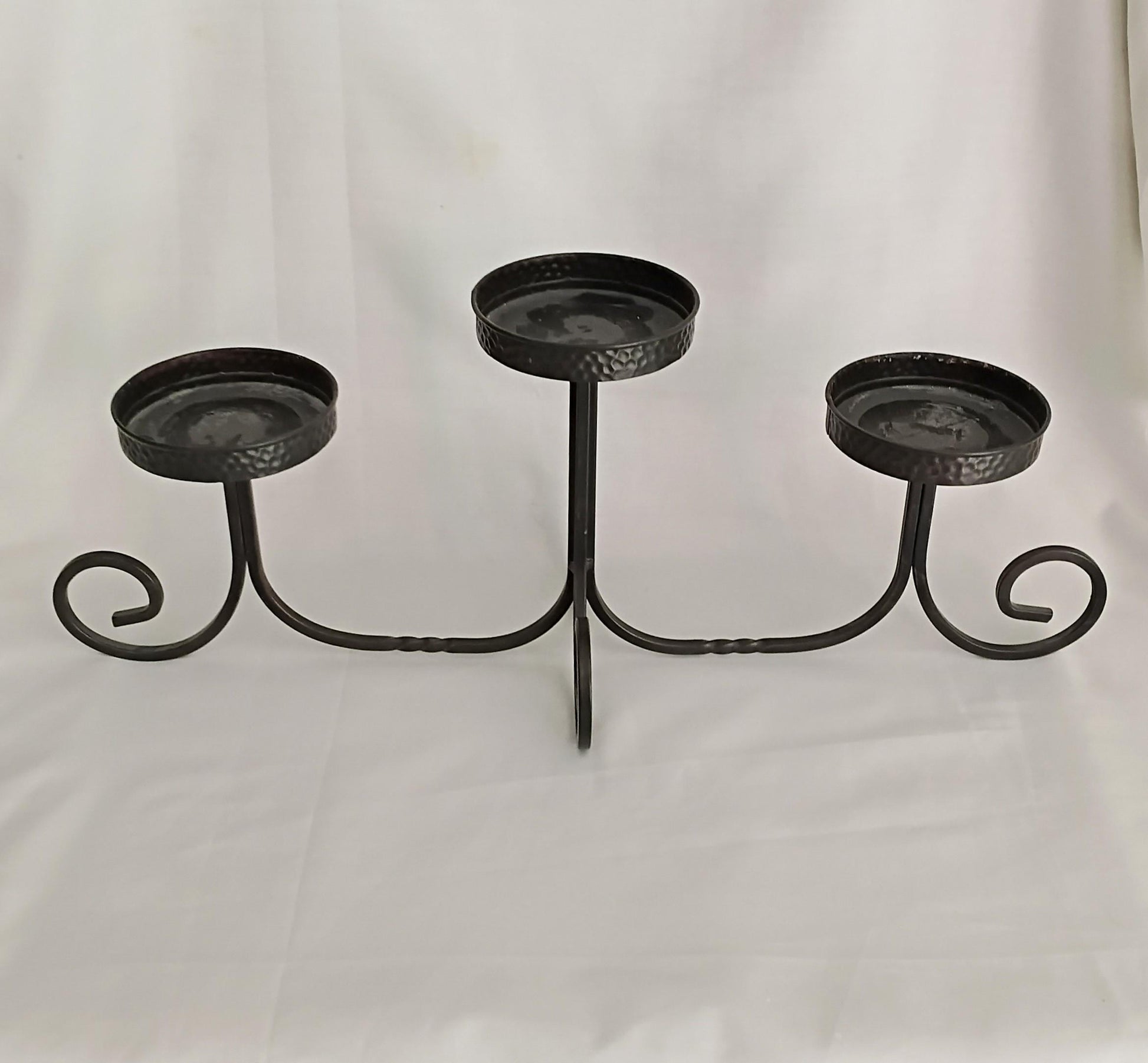 1990s Partylite black wrought iron curled 3 arm candelabra