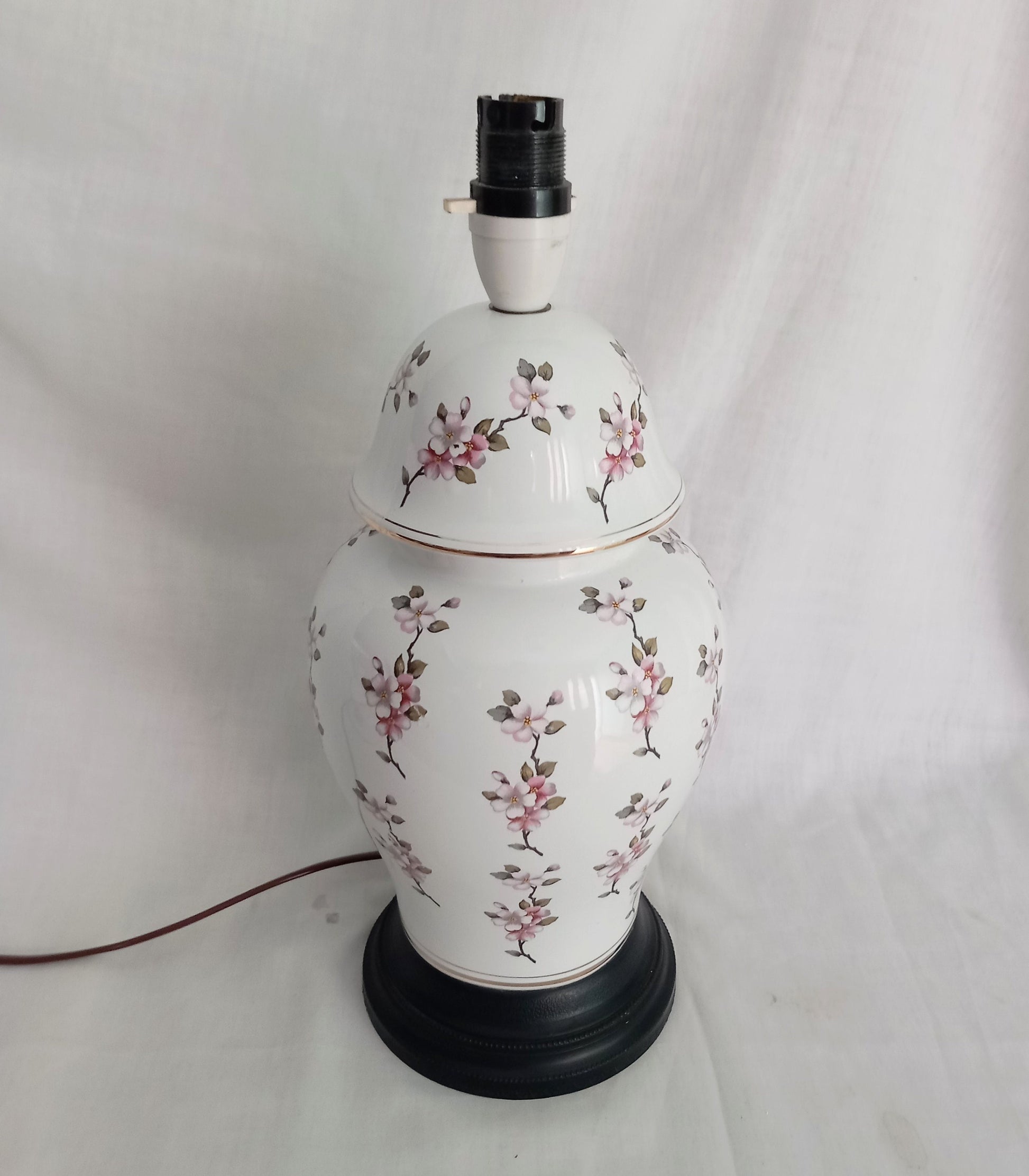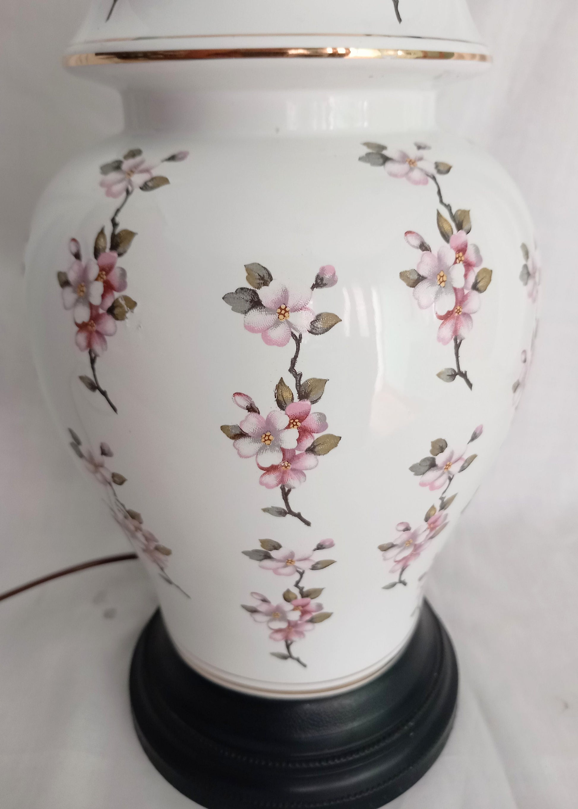 1980s Pink Flower Pattern Ginger Jar Ceramic table lamp 14.25"