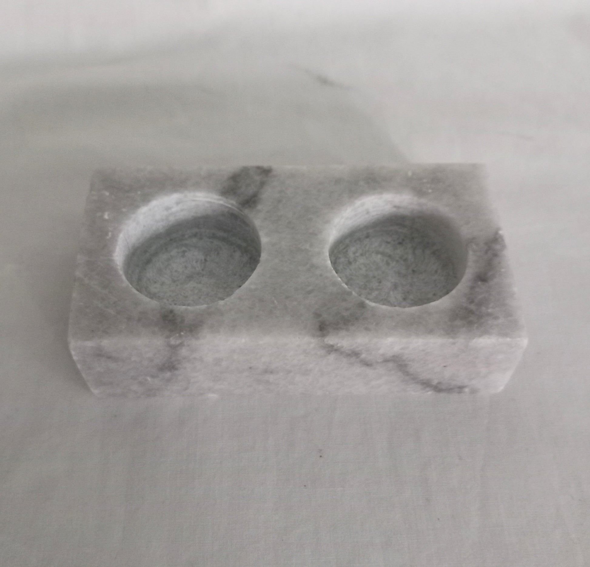 Vintage polished grey marble stone tea light candle holder, 12 x 6 x 3 cm. This has been used and is showing some small knocks to the edges.